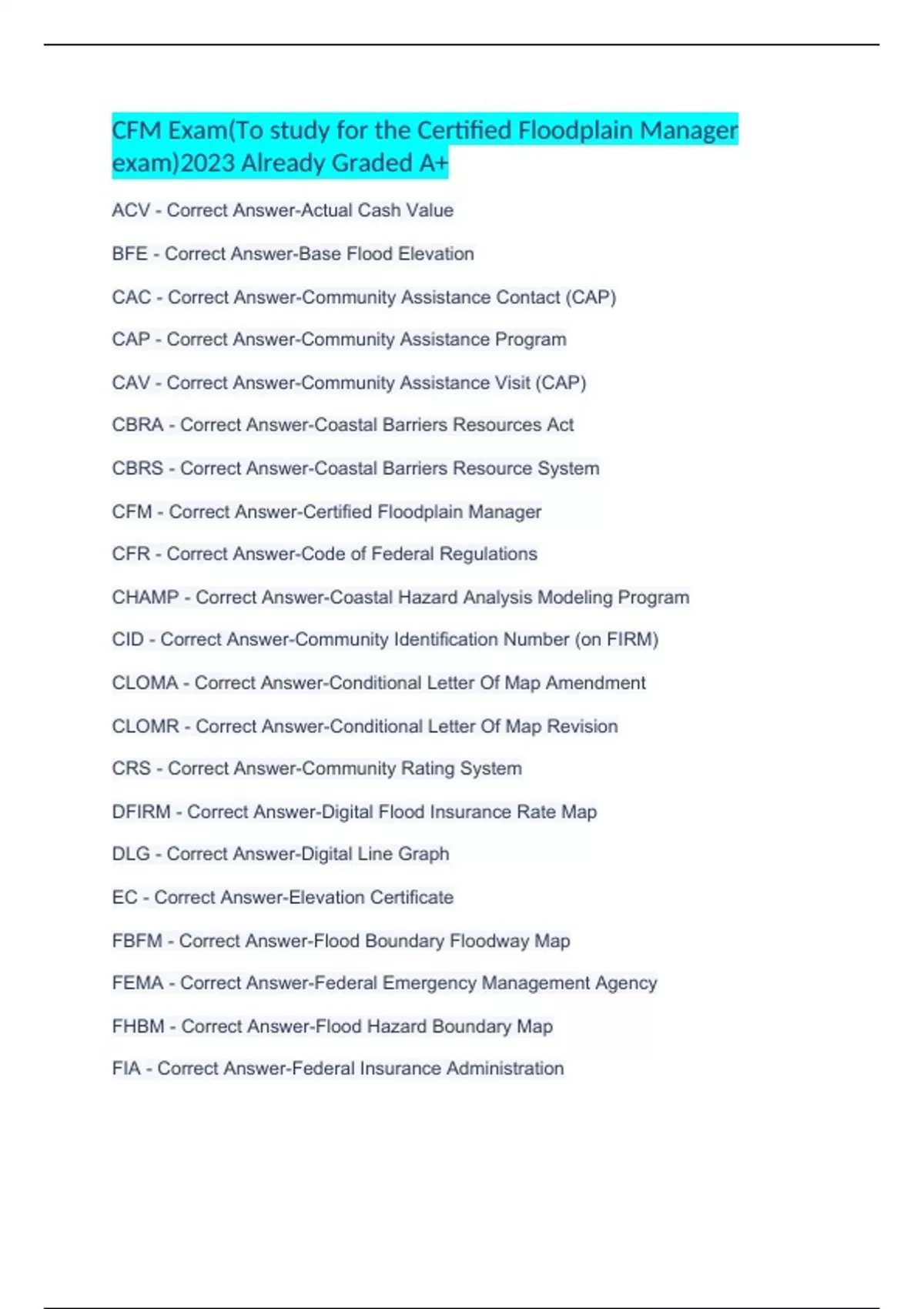 CFM Exam(To study for the Certified Floodplain Manager exam)2023 Already Graded A+