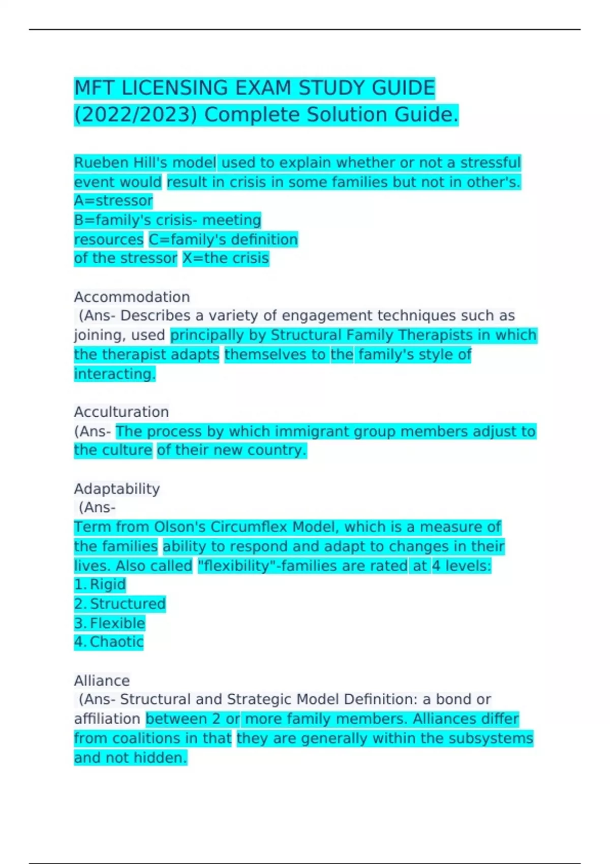 MFT LICENSING EXAM STUDY GUIDE (2022/2023) Complete Solution Guide.