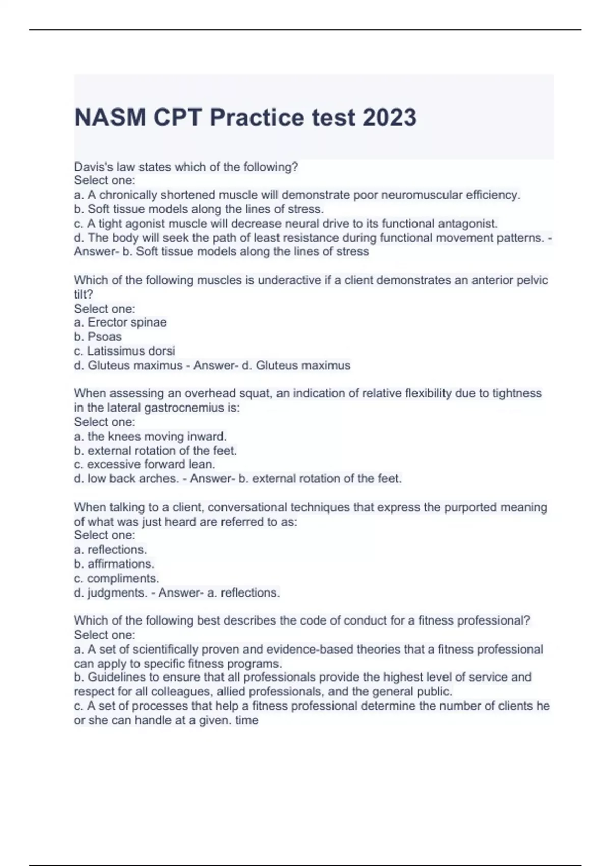 NASM CPT Practice test 2023 questions and Answers