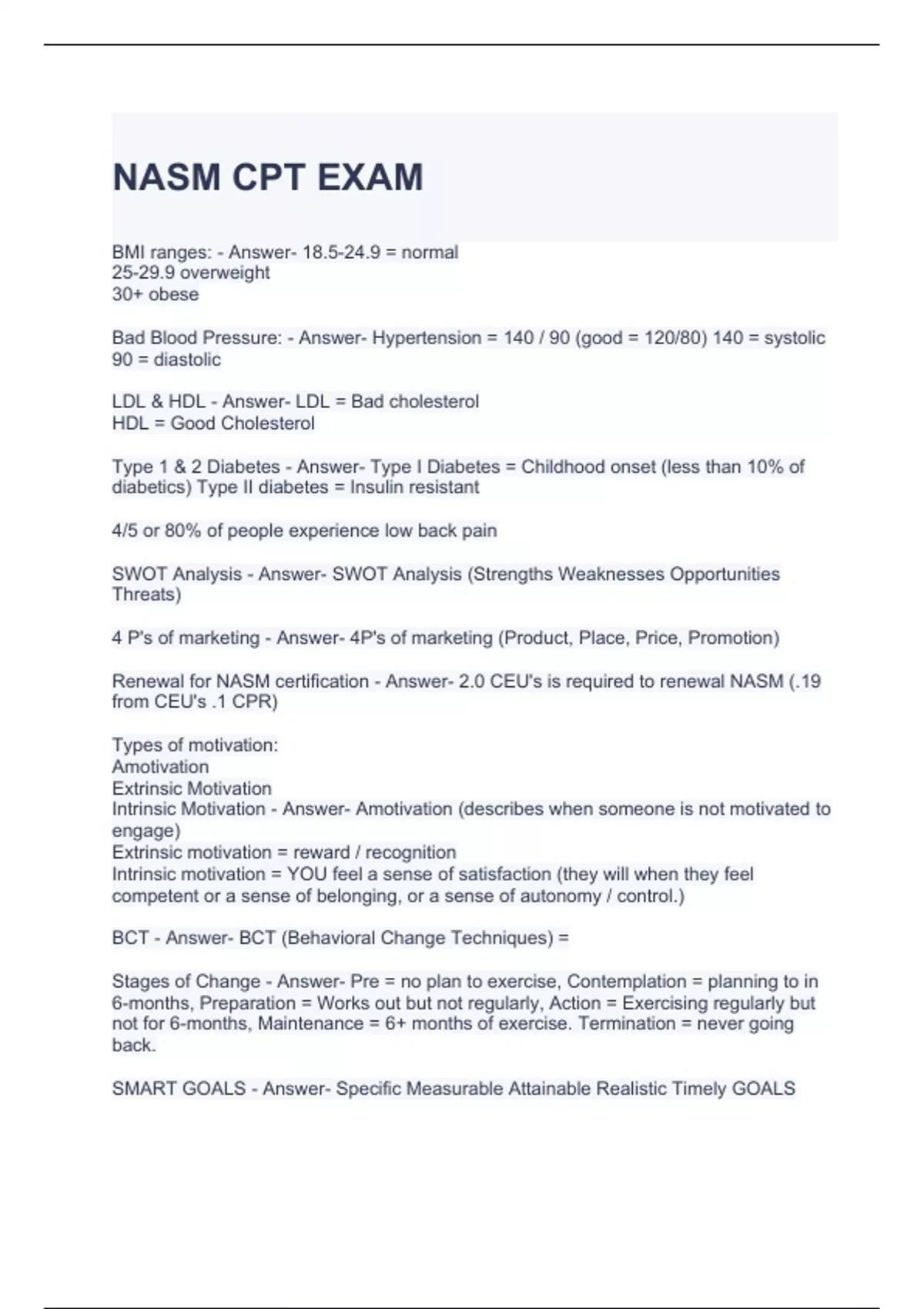 NASM CPT EXAM QUESTIONS AND ANSWERS 2023