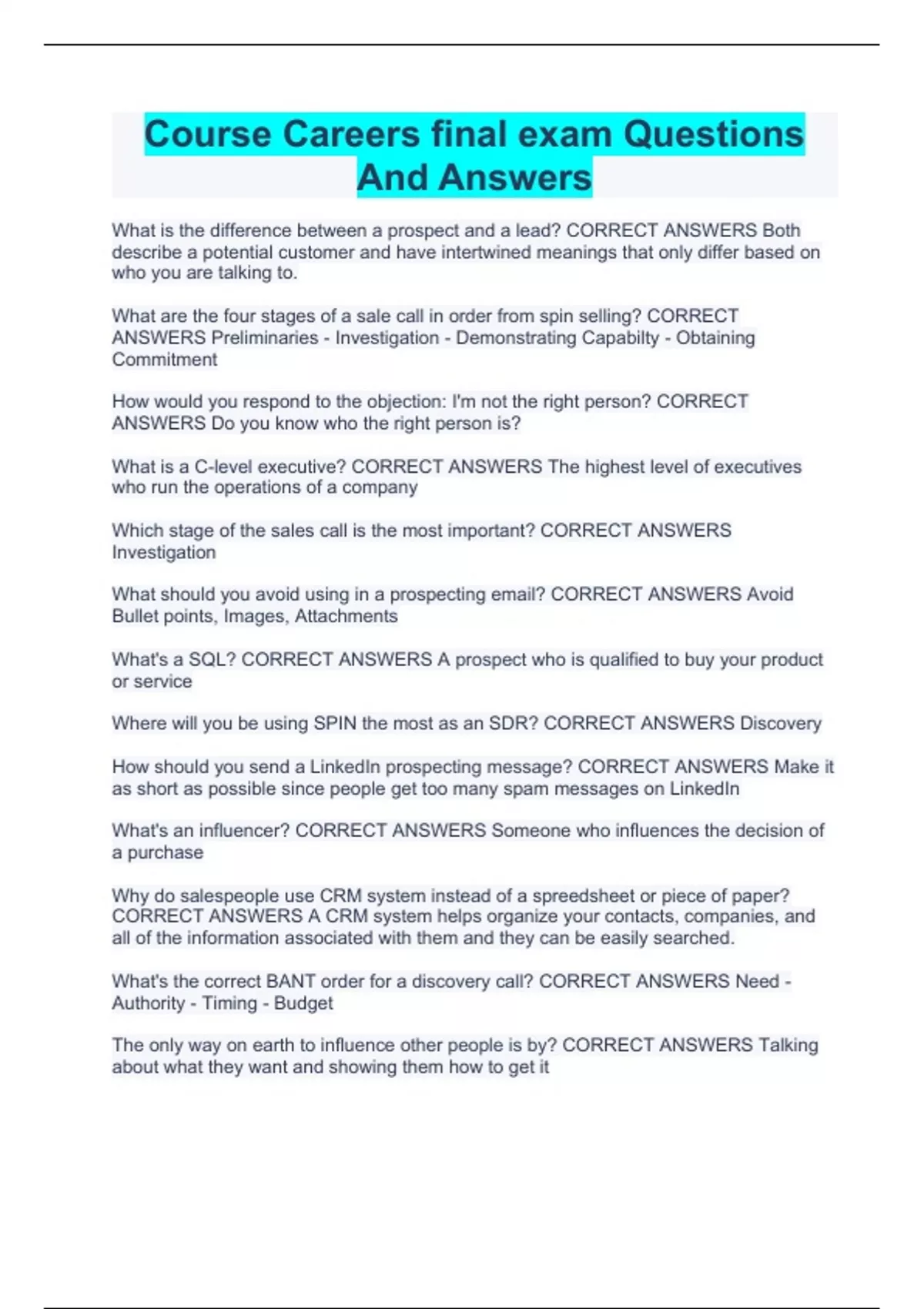 Course Careers final exam Questions And Answers