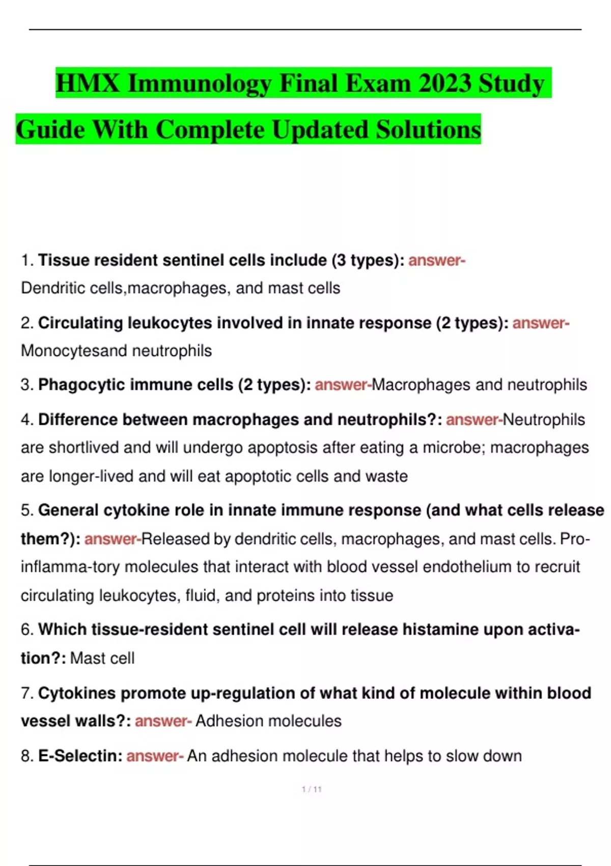 HMX Immunology Final Exam 2023 Study Guide With Complete Updated Solutions