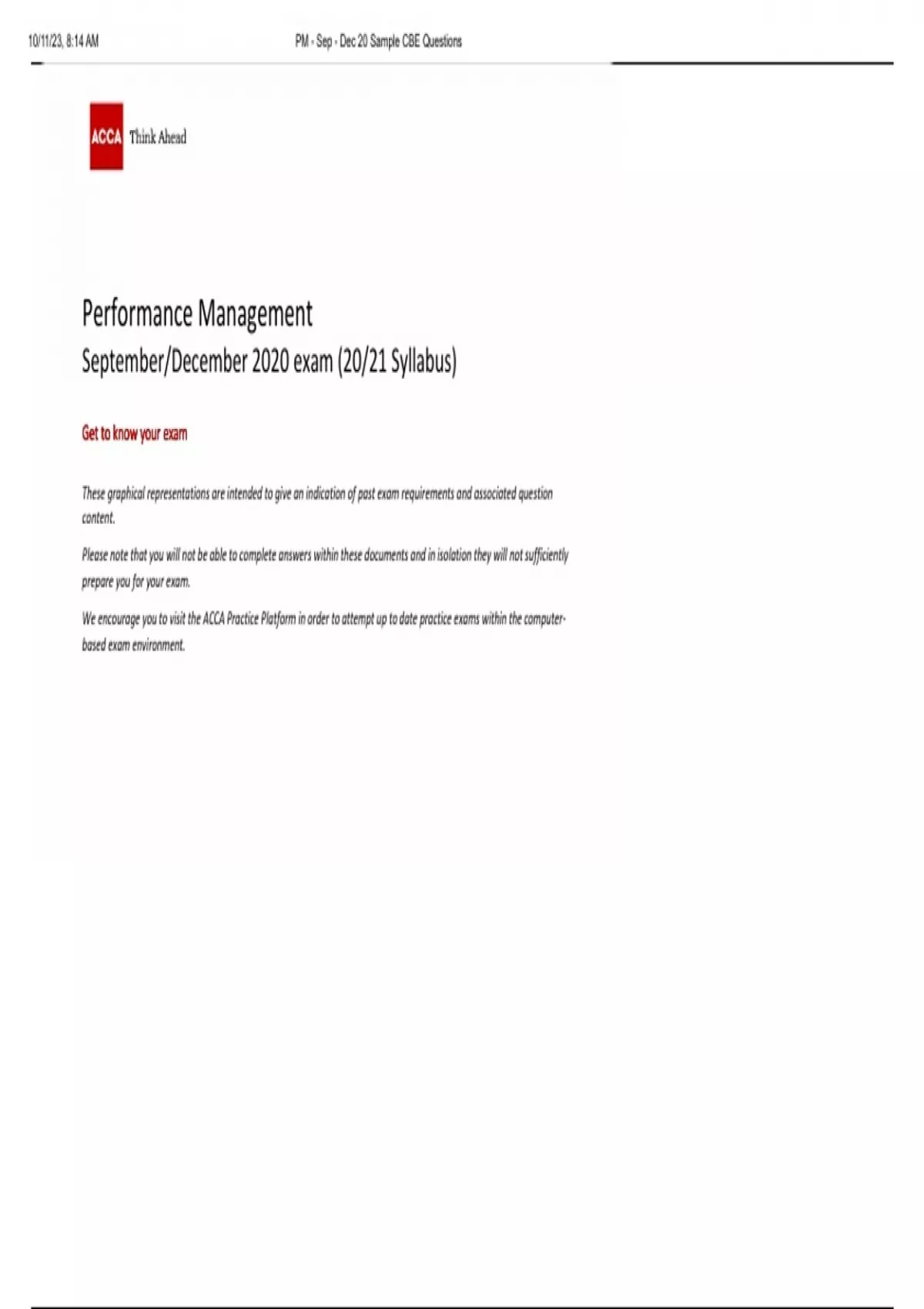 ,10/11/23, 8:14 AM PM - Sep - Dec 20 Sample CBE Questions