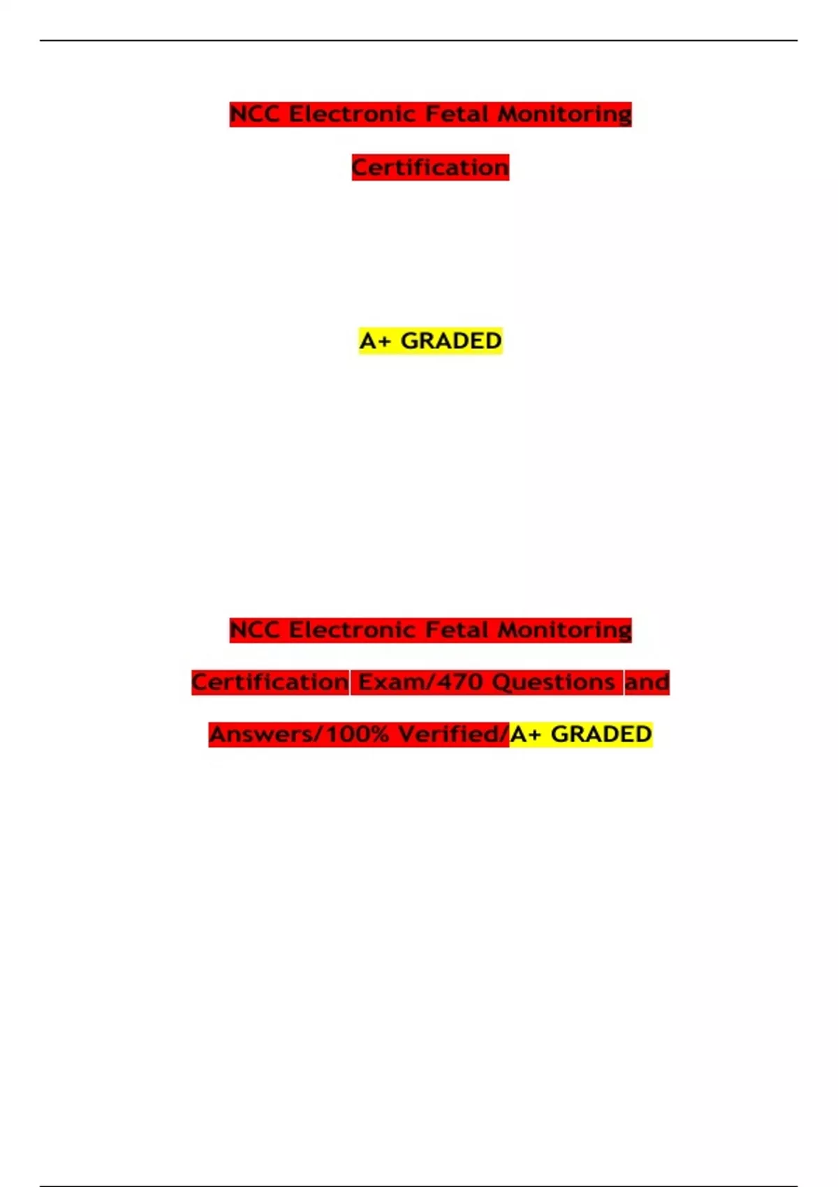 NCC Electronic Fetal Monitoring Certification A+ GRADED