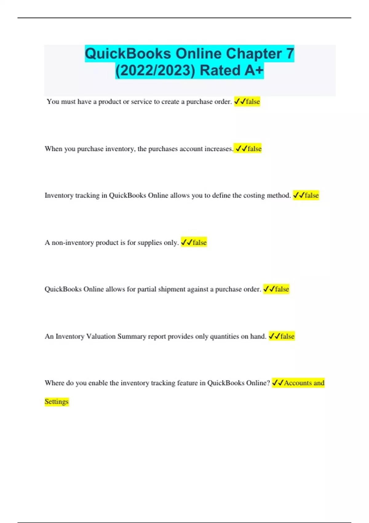 QuickBooks Online Chapter 7 (2023/2024) Rated A+