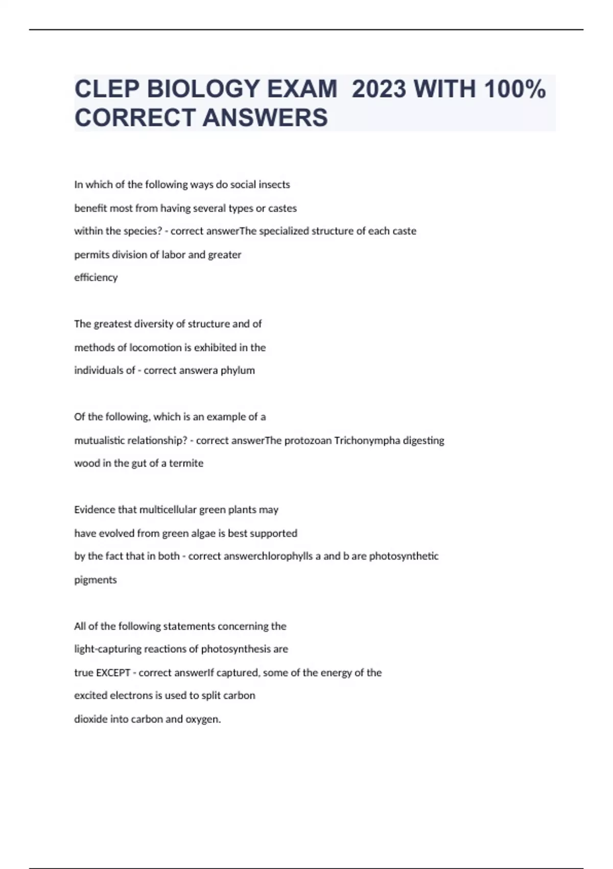 CLEP BIOLOGY EXAM 2023 WITH 100% CORRECT ANSWERS