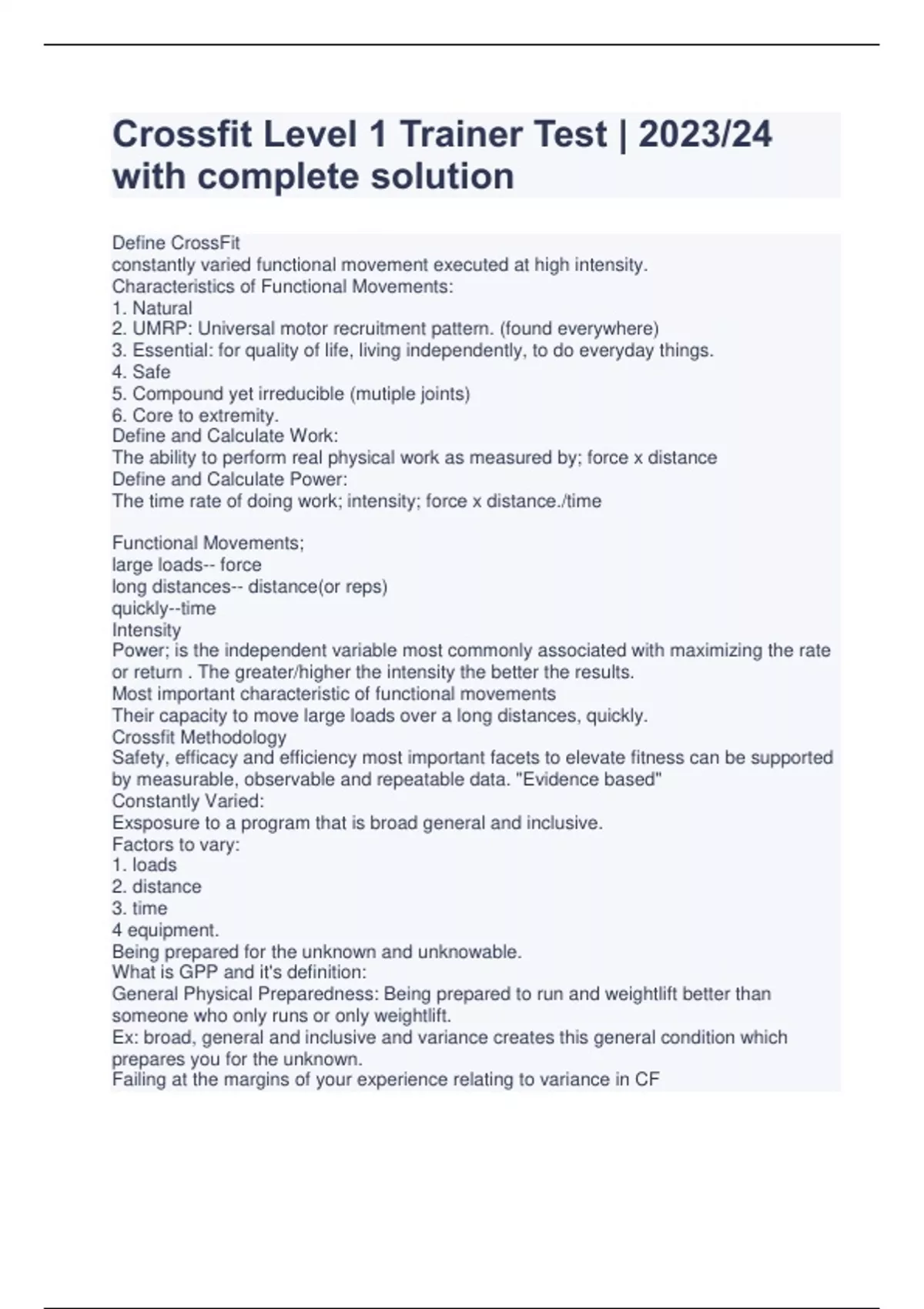 Basic Human Nutrition Final (hlth 230) | with latest complete questions and answers Why people choose foods - Habit, Ethnic heritage or tradition, Social Interactions, Availability, Convenience and Economy, Positive and negative associations, Emotions, Values, Bodyweight and image, Nutrition and health benefits Functional foods - foods that contain physiologically active compounds that provide health benefits beyond their nutrient contributions ex. tomatoes Phytochemicals - non nutrient compounds found in plant-derived foods that have biological activity in the body ex. fortified foods Nutriton - the study of nutrients and other biologically active compounds in foods and in the body; sometimes also the study of human behaviours related to food Diet - the foods (including beverages) a person eats and drinks 6 classes of nutrients - carbohydrates, fats, proteins, vitamins, minerals, water Malnutrition - any condition caused by excess or deficient food energy or nutrient intake or by an imbalance of nutrients Undernutrition - nutrient or energy deficiencies Overnutrition - nutrient or energy excess Chronic diseases - long duration, degeneration diseases characterized by deterioration of the body organs Leading causes of death in Canada - 1. cancer 2. heart disease 3. cerebrovascular disease which are influenced by diet and nutrition Examples of chronic diseases - heart disease, diabetes, cancer, dental disease, stroke, adult bone loss Nutritional genomics - the science of how nutrients affect the activities of genes and how genes affect the interactions between diet and disease Other names for nutritional genomics - molecular nutrition or nutrigenomics Energy - the capacity to do work 1000 calories equals - 1 kilocalorie 1 kilocalorie - the amount of heat required to raise the temperature of 1kg of water by 1 degree celsius Macronutrients - required in large amounts per day Micronutrients - required in small amounts per day Essential Nutrients - nutrients that a person must obtain from food (cannot be made by body) Inorganic Nutrients - nutrients that contain no carbon Organic Nutrients - nutrients that contain carbon Energy yielding nutrients - nutrients that can be broken down to provide energy to the body Types of macronutrients - carbs, protein, lipids, water Types of micronutrients - vitamins and minerals Inorganic nutrients - minerals and water Organic nutrients - carbs, lipids, proteins, vitamins Non-energy yielding nutrients - vitamins, minerals, water Energy yielding nutrients - carbs, proteins, lipids Energy in carbs - 4 cal/g Energy in fat - 9cal/g Energy in protein - 4cal/g % of calories from carbs - 45-65% % of calories from fat - 20-35% % of calories from protein - 10-35% Essential nutrient - a nutrient that a person cannot make in adequate amounts to sustain life Non-essential nutrients - does not need to be derived from food bc body can make enriched foods and fortified foods - foods that have had nutrients added to them (ex. White bread) functional foods - appear similar to conventional foods, consumes as part of the usual diet, with demonstrated physiological benefits or with the ability to reduce chronic disease risks beyond basic nutrient functions (ex. Oatmeal) natural foods - no definition, used in advertisements super foods - no definition, used in fake advertisements processed foods - foods subject to any milling, alteration in texture, additives, cooking or others nutraceutical - describes a product that has been isolated from food often sold in pill form (ex. Cod liver oil) basic foods - vegetables, fruit, milk, meat and grains Healthy diets include - adequacy, balance, calorie control, moderation, variety adequacy - providing the nutrients, fibre and energy in sufficient amounts to maintain health balance - providing foods of a number of different types in proportion to each other (ex. Milks and alternatives) calorie control - energy with food coming in should balance with the body's energy requirements moderation - nothing in excess, providing dietary restrictions while enjoying some foods on occasion variety - providing a wide selection of foods Excuses for not eating well - no time, crave fast food, too little money, like to eat large portions, take vitamins instead, love sweets Factors that drive food choices - -convenience -advertising -availability -economy -emotional comfort -habit -personal preference and genetics -positive associations -region of the country -social pressure -values or beliefs -weight -nutritional value EAR - Estimated Average Requirement RDA - recommended dietary allowance AI - Adequate Intake UL - Tolerable Upper Intake Level Estimated average requirements definition - The average daily amount of a nutrient that will maintain a specific biochemical or physiological function in half the healthy people of a given age and gender group Recommended dietary allowances definition - The average daily amount of a nutrient considered adequate to meet the known nutrient needs of practically all healthy people; a goal for dietary intake by individuals. Adequate intake definition - the average daily amount of a nutrient that appears sufficient to maintain a specified criterion; a value used as a guide for nutrient intake when an RDA cannot be determined. Tolerable upper intake levels definition - the maximum daily amount of a nutrient that appears safe for most healthy people and beyond which there is an increased risk of adverse health effects. Food guide recommendations about food choices - -healthy food choices -healthy eating habits Healthy food choices - Make it a habit to eat a variety of healthy foods each day Healthy food choices components - - Eat plenty of vegetables and fruits, whole grain foods and protein foods. - Choose protein foods that come from plants more often. - Limit highly processed foods. - Water drink of choice - Use food labels - Be aware that food marketing can influence your choices. Healthy eating habits - Healthy eating