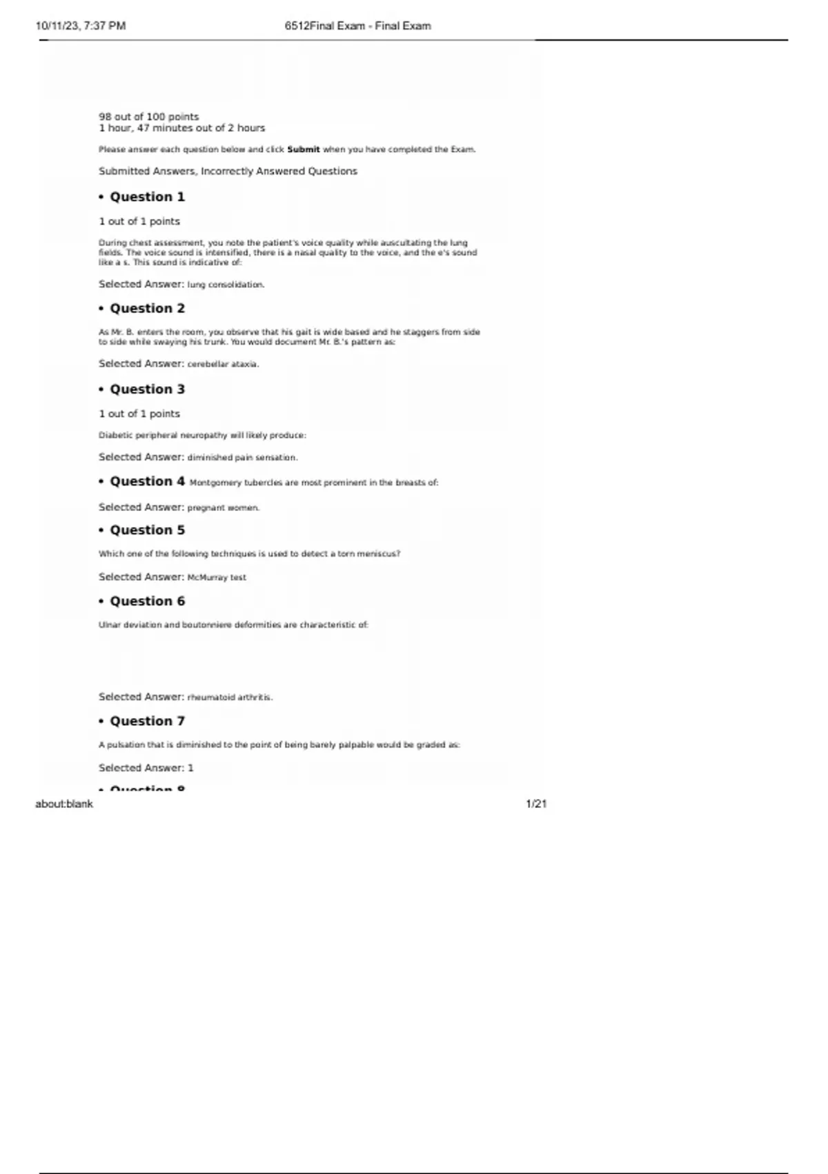 Submitted Answers, Incorrectly Answered Questions