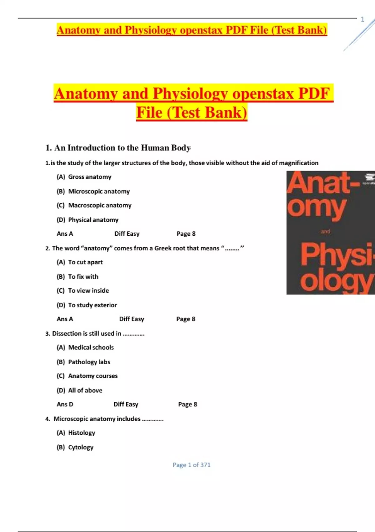 Anatomy and Physiology openstax PDF File (Test Bank)