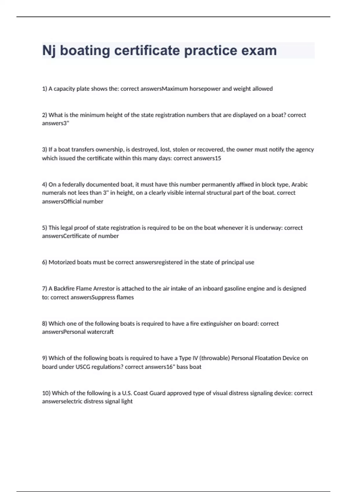 Nj boating certificate practice exam 2023 with 100% complete solutions