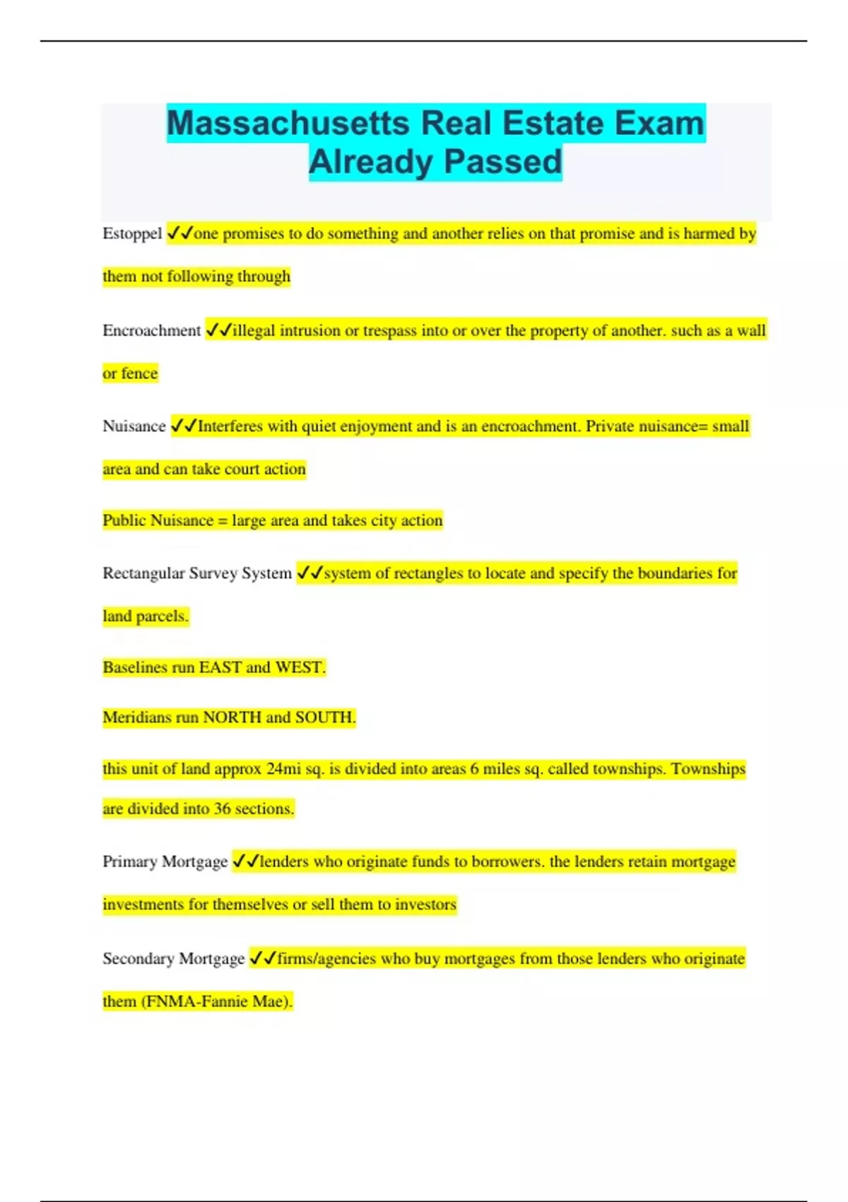 Massachusetts Real Estate Exam Questions with Correct Answers Already Passed