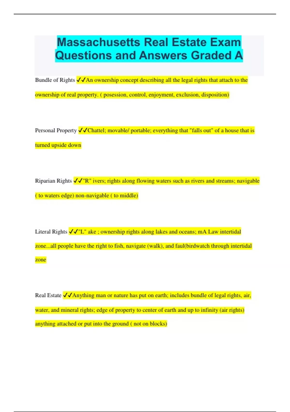 Massachusetts Real Estate Exam Questions and Answers Graded A