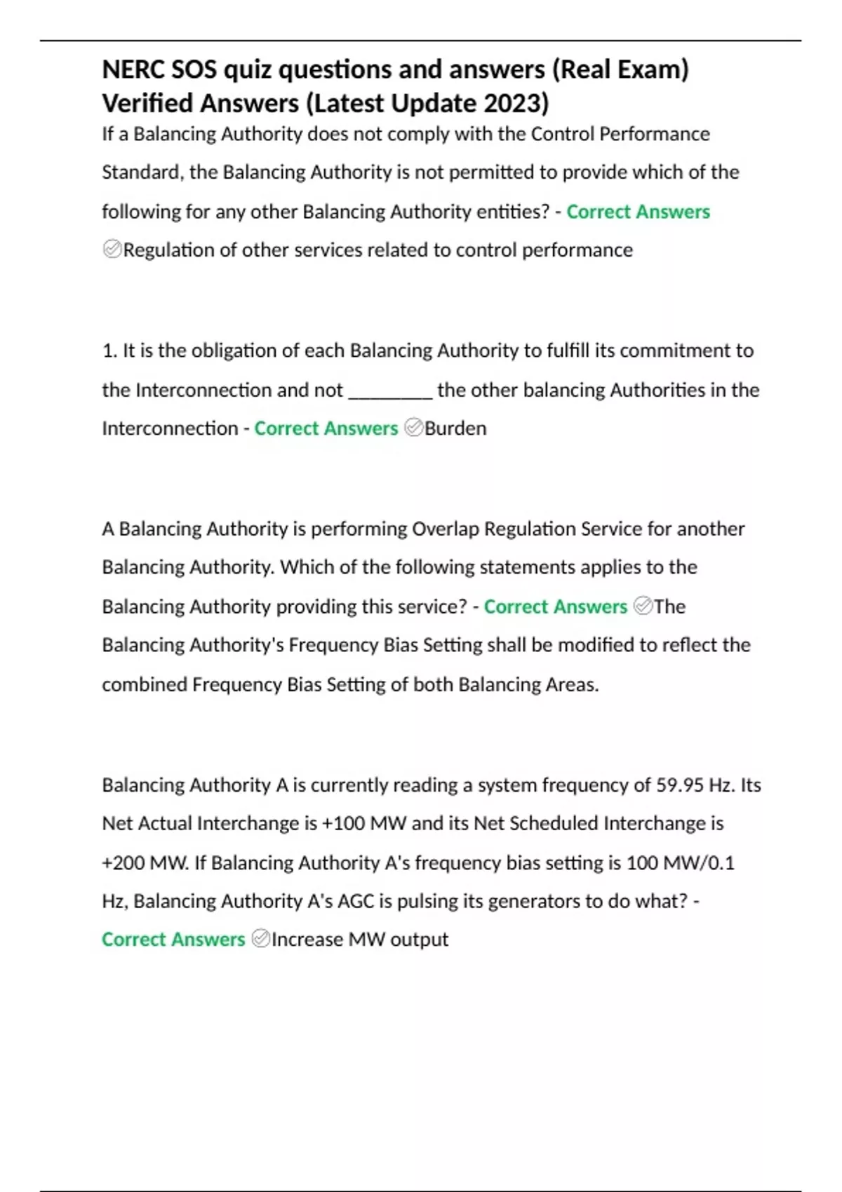 NERC SOS quiz questions and answers (Real Exam) Verified Answers (Latest Update 2023)
