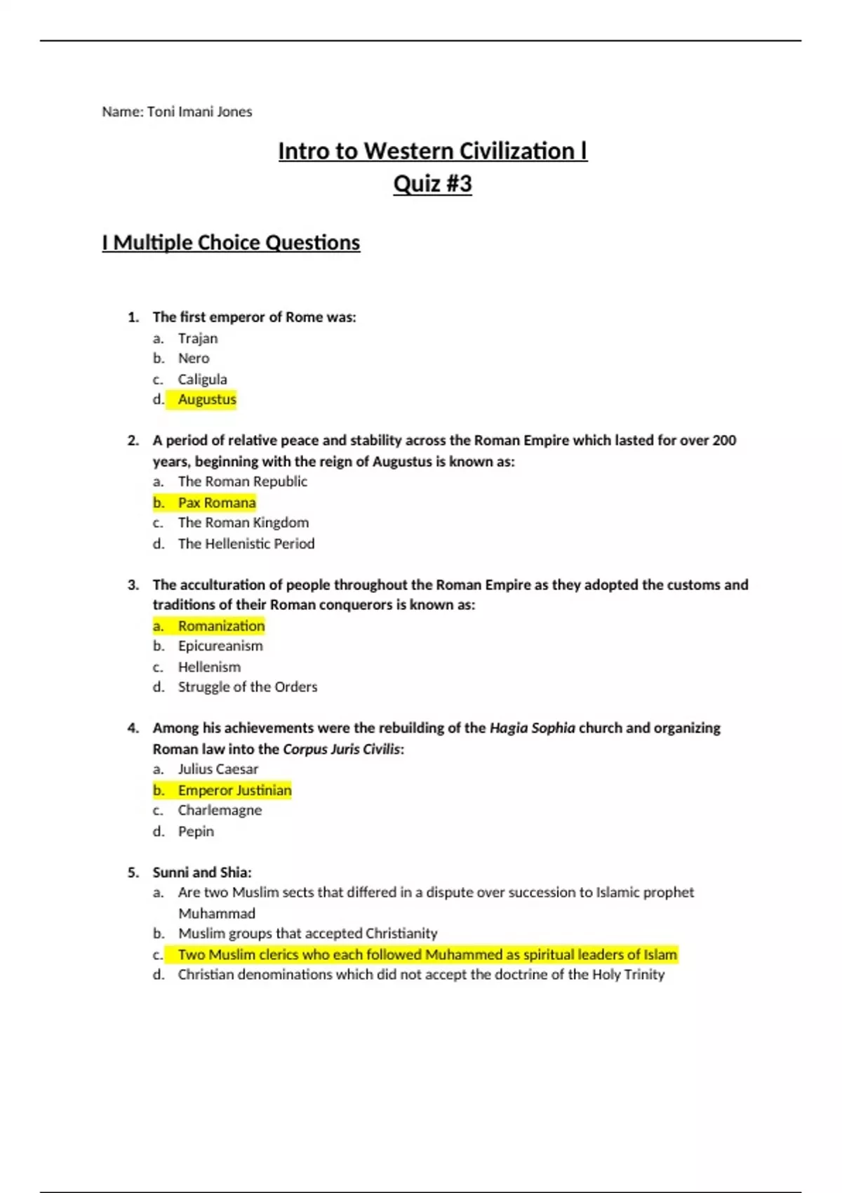 Exam of 4 pages for the course history at Union College (quiz on western civ)