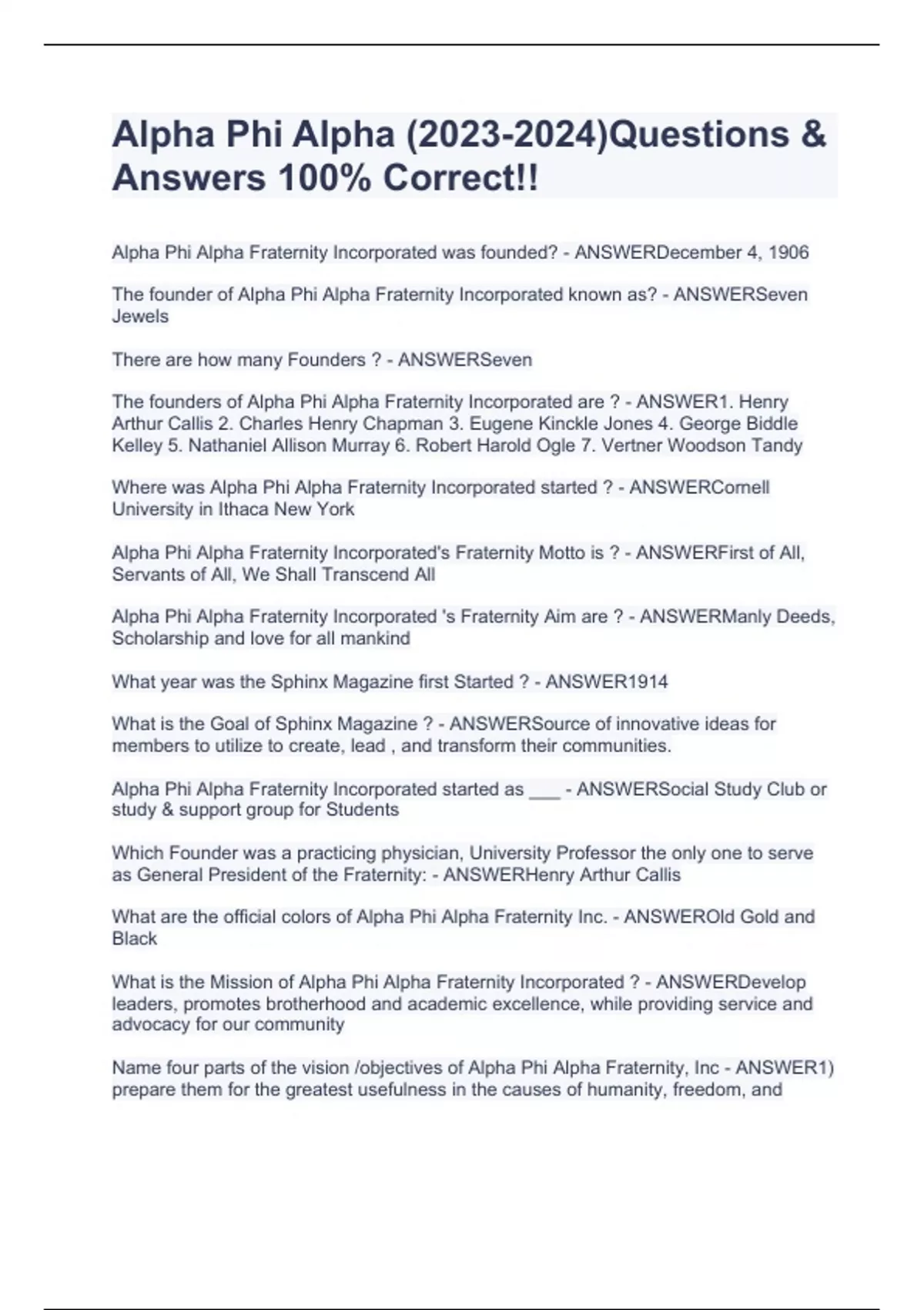Alpha Phi Alpha Questions & Answers 100% Correct!!