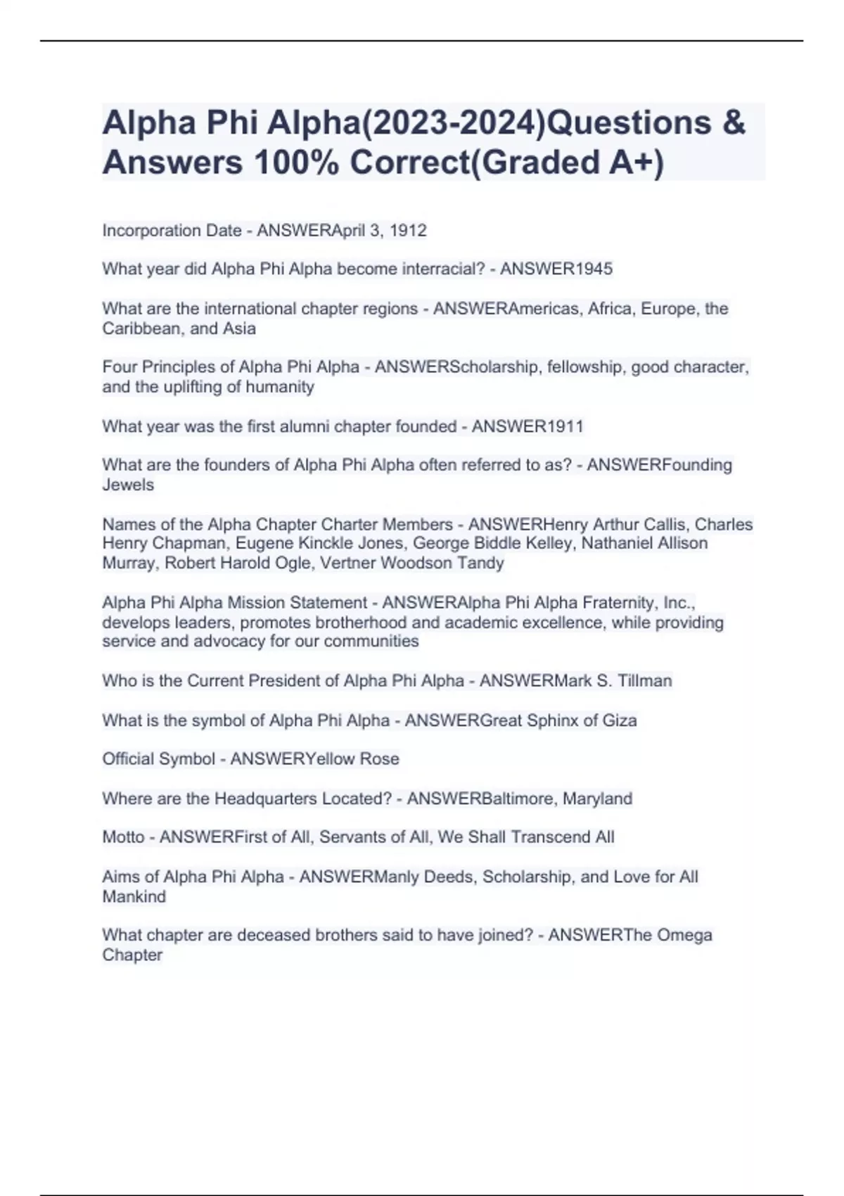 Alpha Phi Alpha()Questions & Answers 100% Correct(Graded A+)