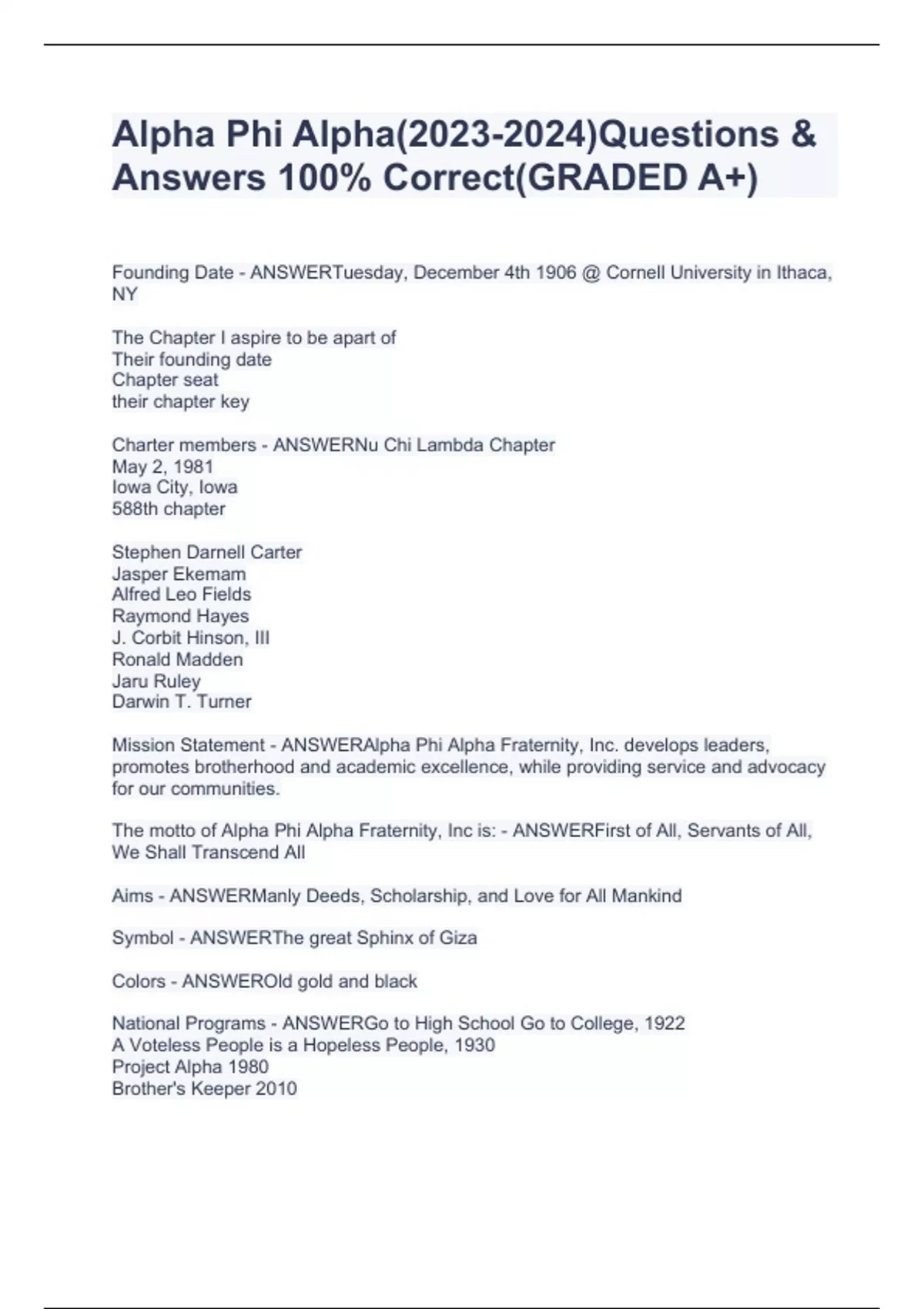 Alpha Phi Alpha()Questions & Answers 100% Correct(GRADED A+)
