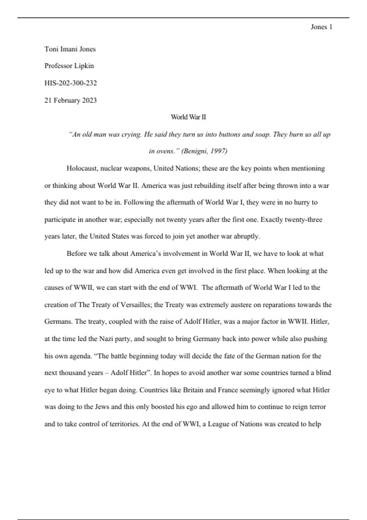 Essay of 4 pages for the course history at Union College (essay on WWII)