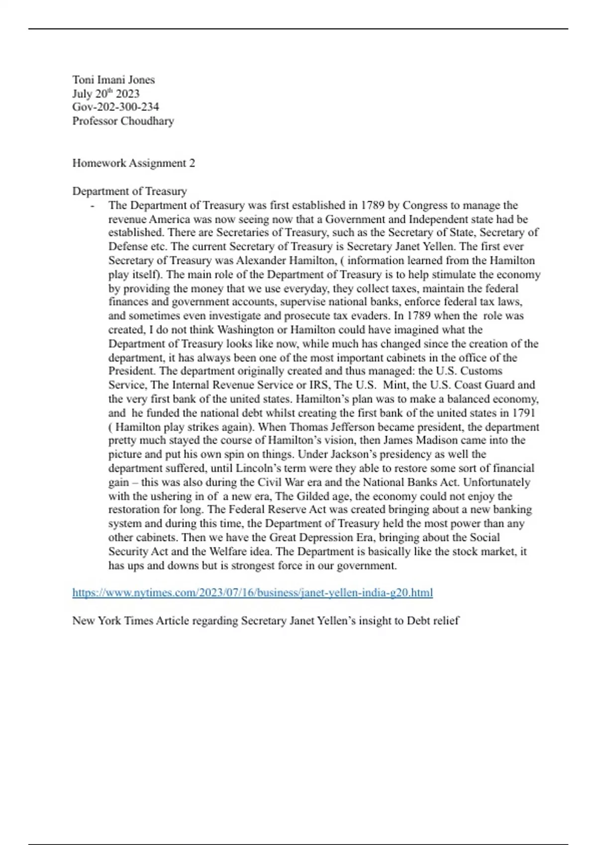 homework on the department of treasury