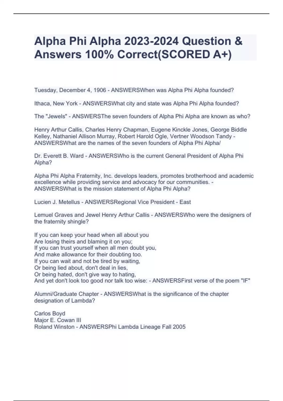 Alpha Phi Alpha Question & Answers 100% Correct(SCORED A+)