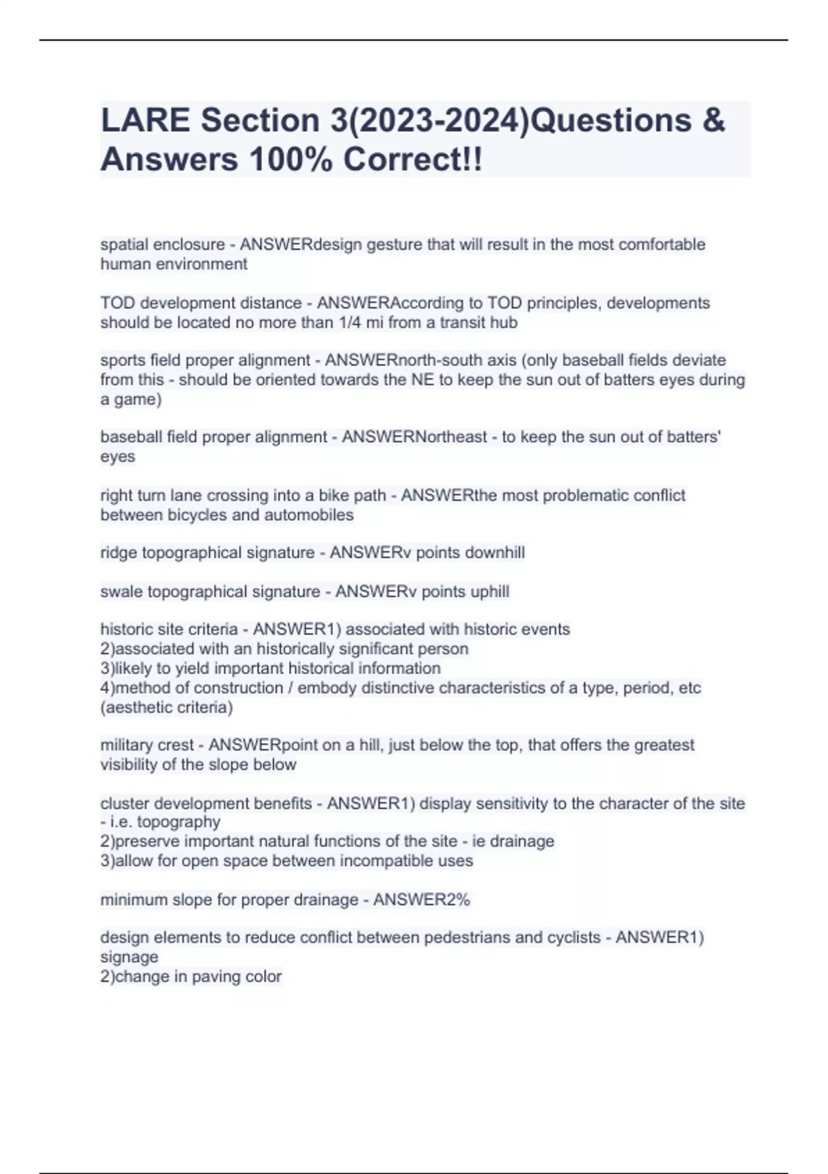 LARE Section 3()Questions & Answers 100% Correct!!