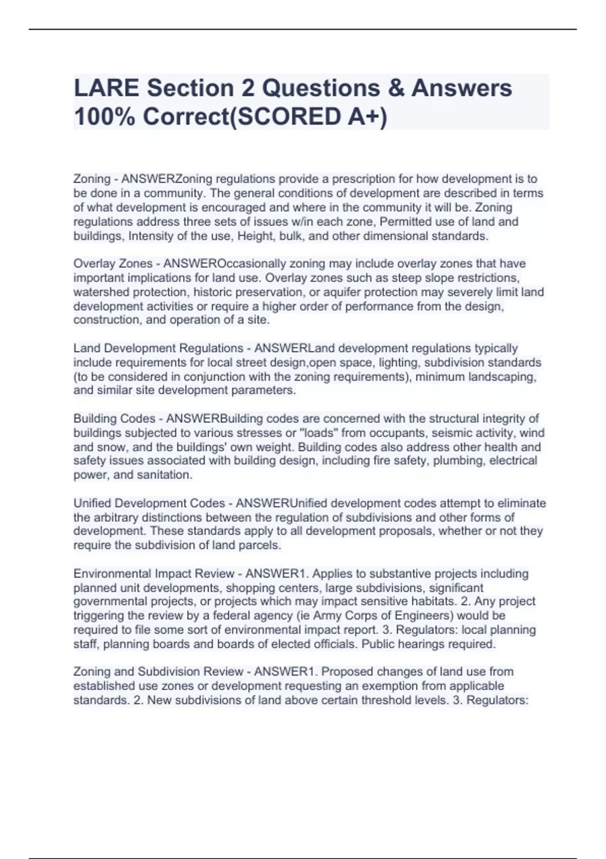 LARE Section 2 Questions & Answers 100% Correct(SCORED A+)