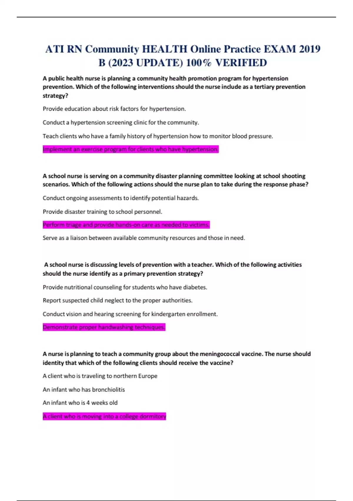 ATI RN Community HEALTH Online Practice EXAM 2019 B (2023 UPDATE) 100% VERIFIED