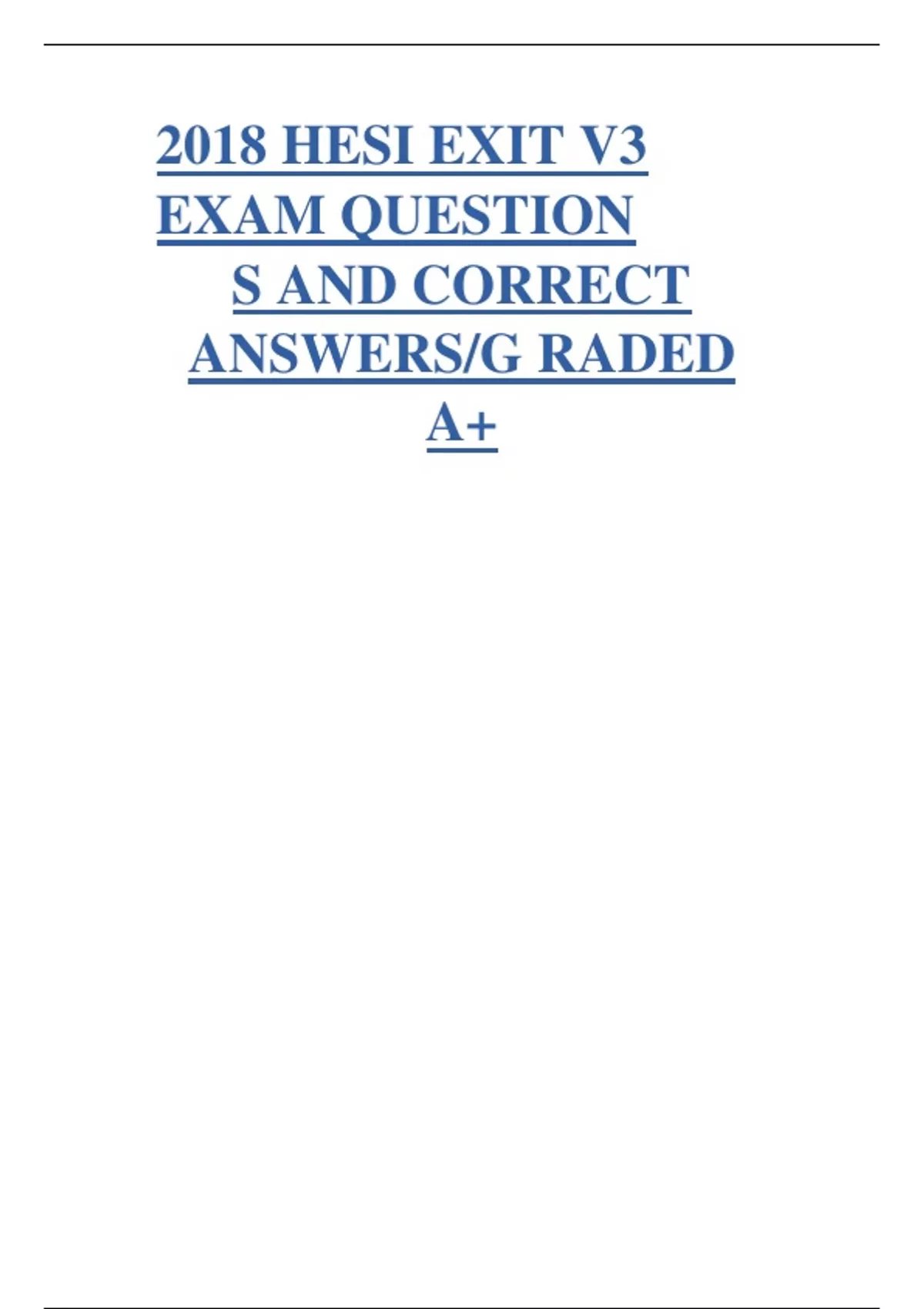 2018 hesi exit v3 exam questions and correct answers