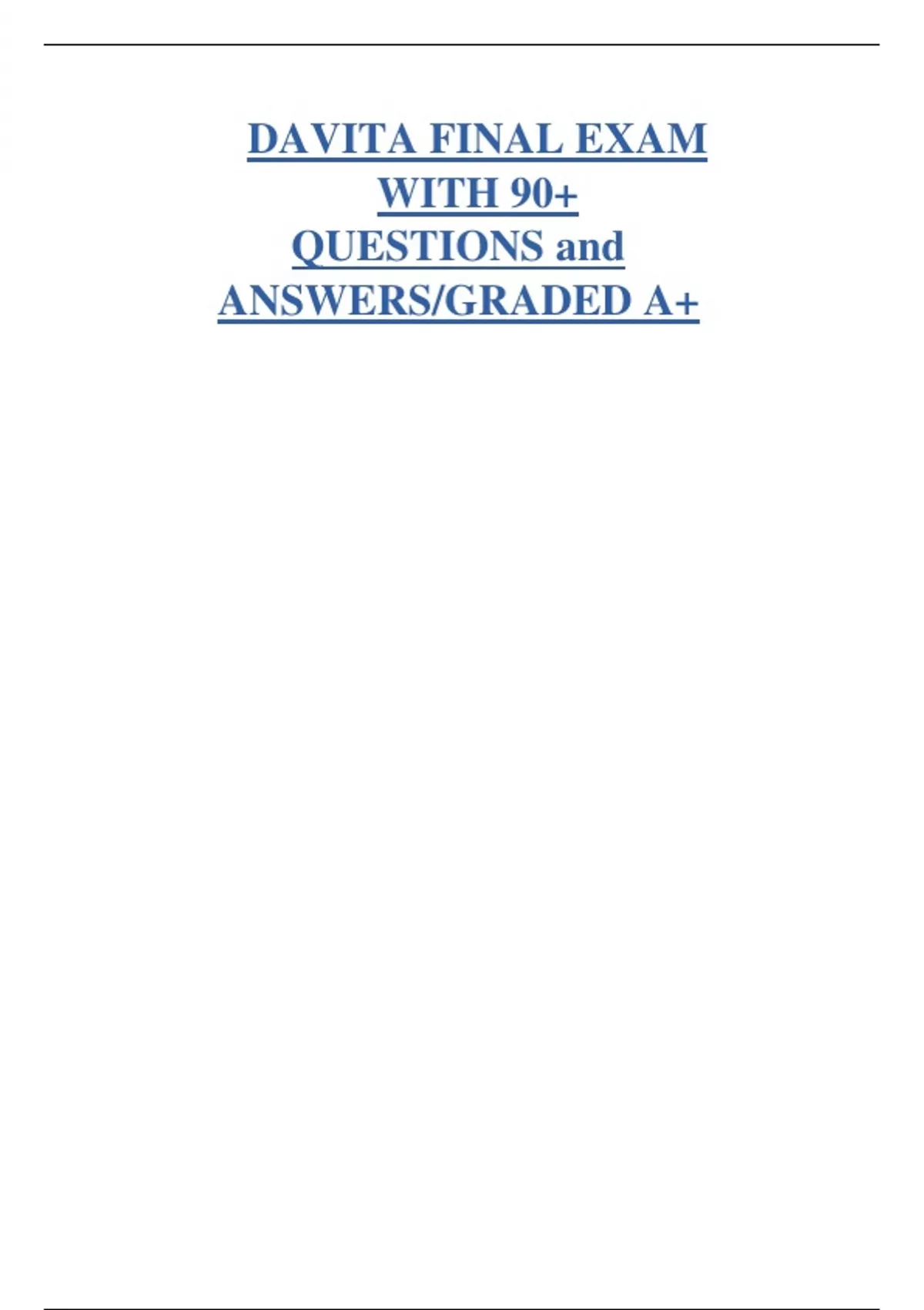 davita final exam with 90 questions answers graded