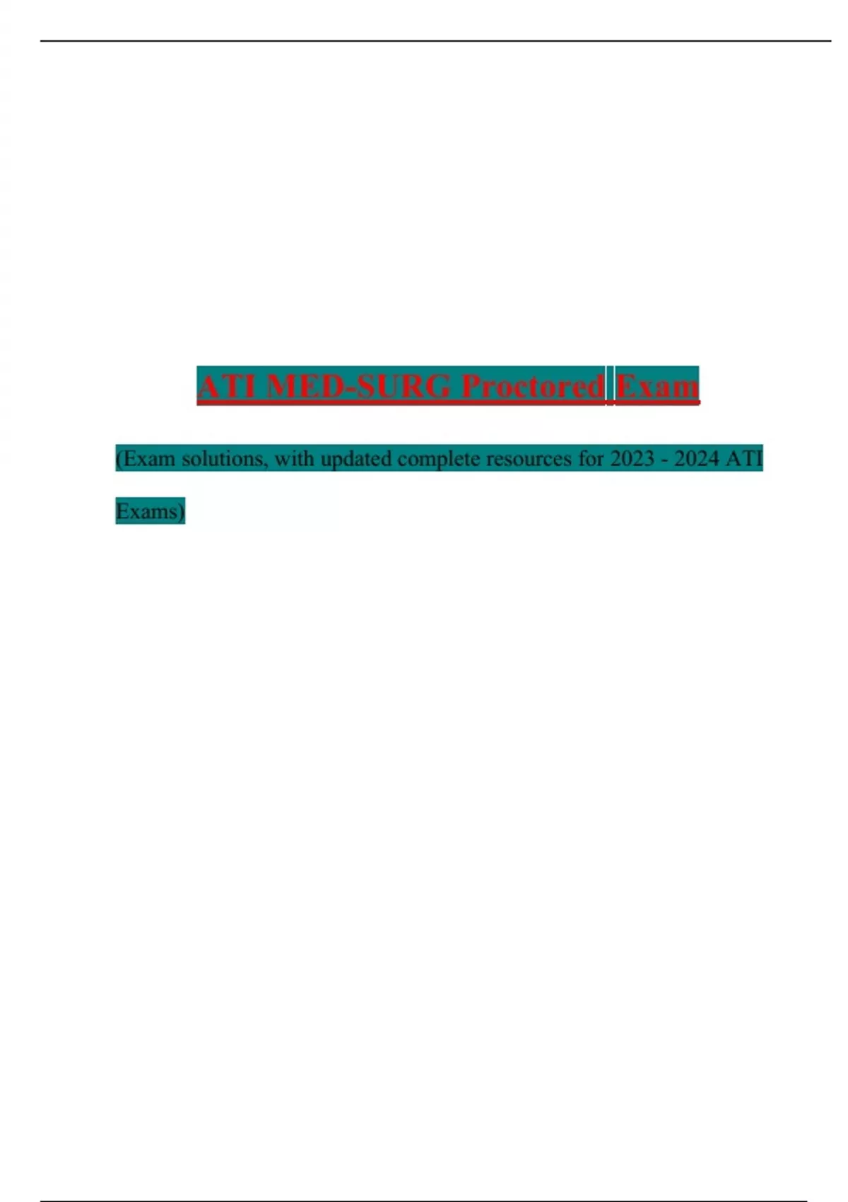 ATI MED-SURG Proctored Exam (Exam solutions, with updated complete resources for 2022 ATI Exams) A+ GRADED