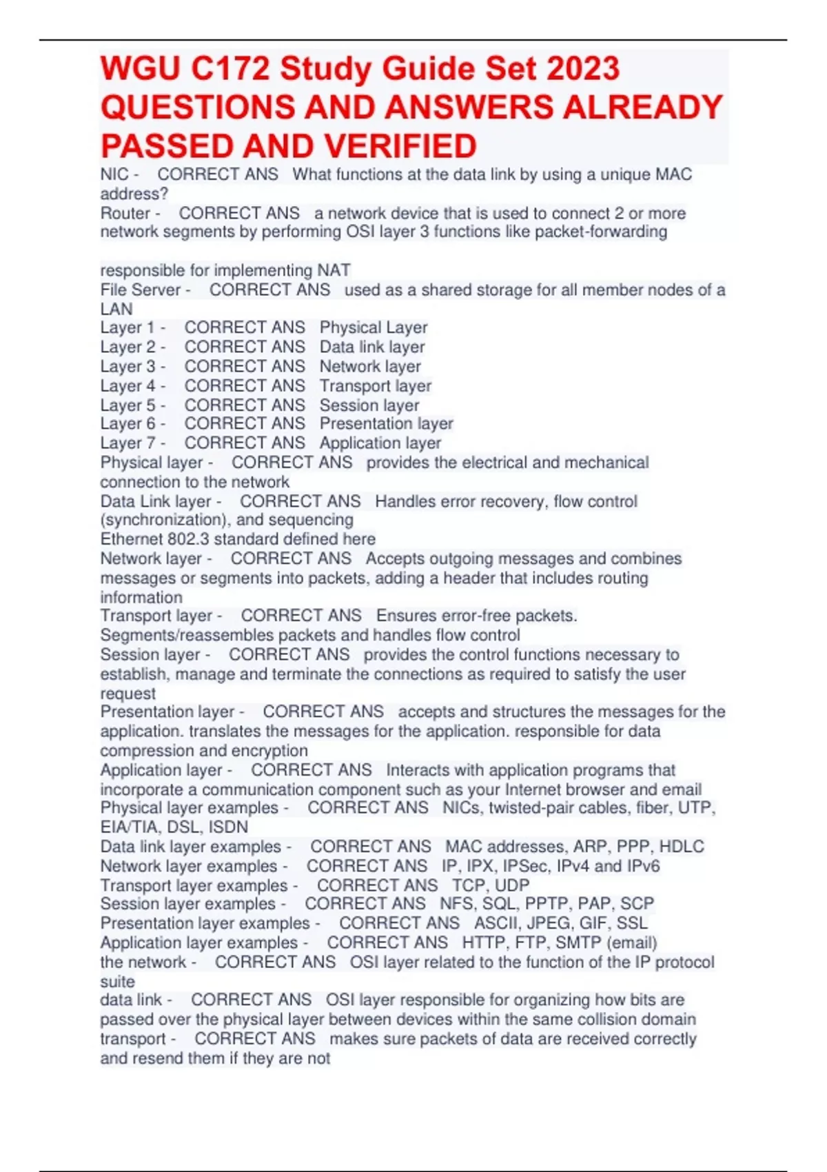WGU C172 Study Guide Set 2023 QUESTIONS AND ANSWERS ALREADY PASSED AND VERIFIED