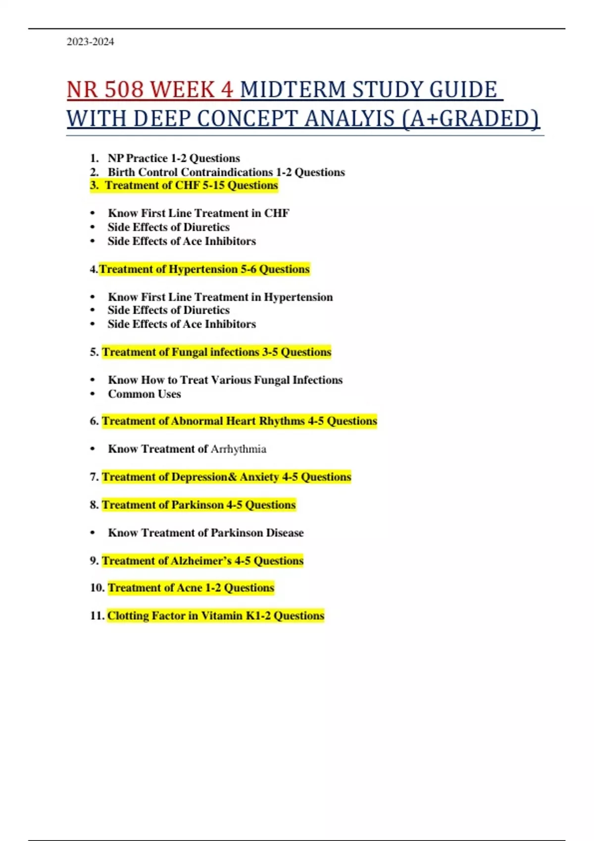 NR 508 WEEK 4 MIDTERM STUDY GUIDE WITH DEEP CONCEPT ANALYIS (A+GRADED)