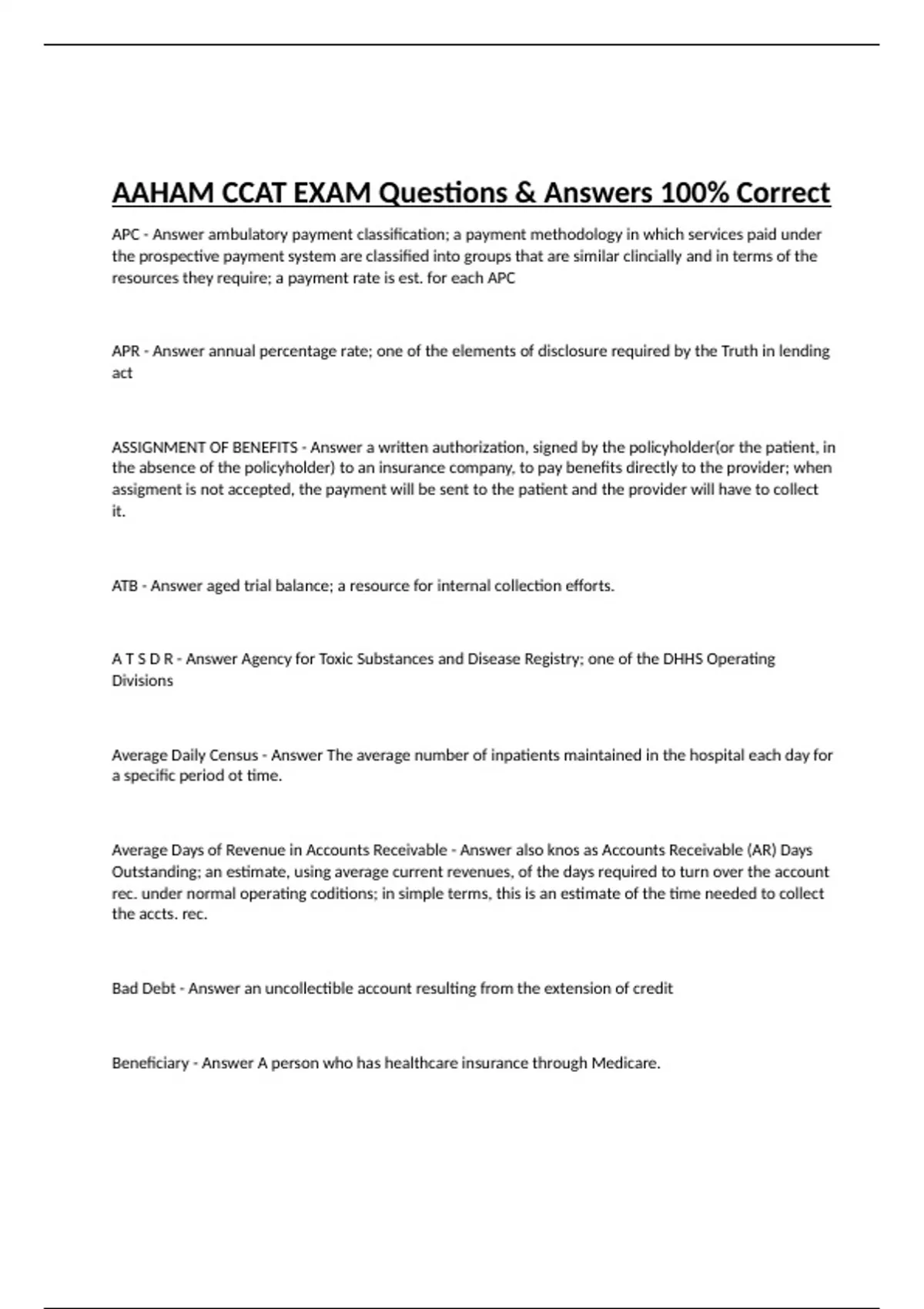 AAHAM CCAT EXAM Questions & Answers 100% Correct