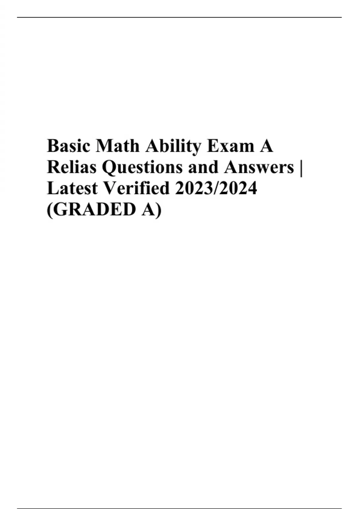 Basic Math Ability Exam A Relias Questions and Answers | Latest Verified 2023/2024 (GRADED A)