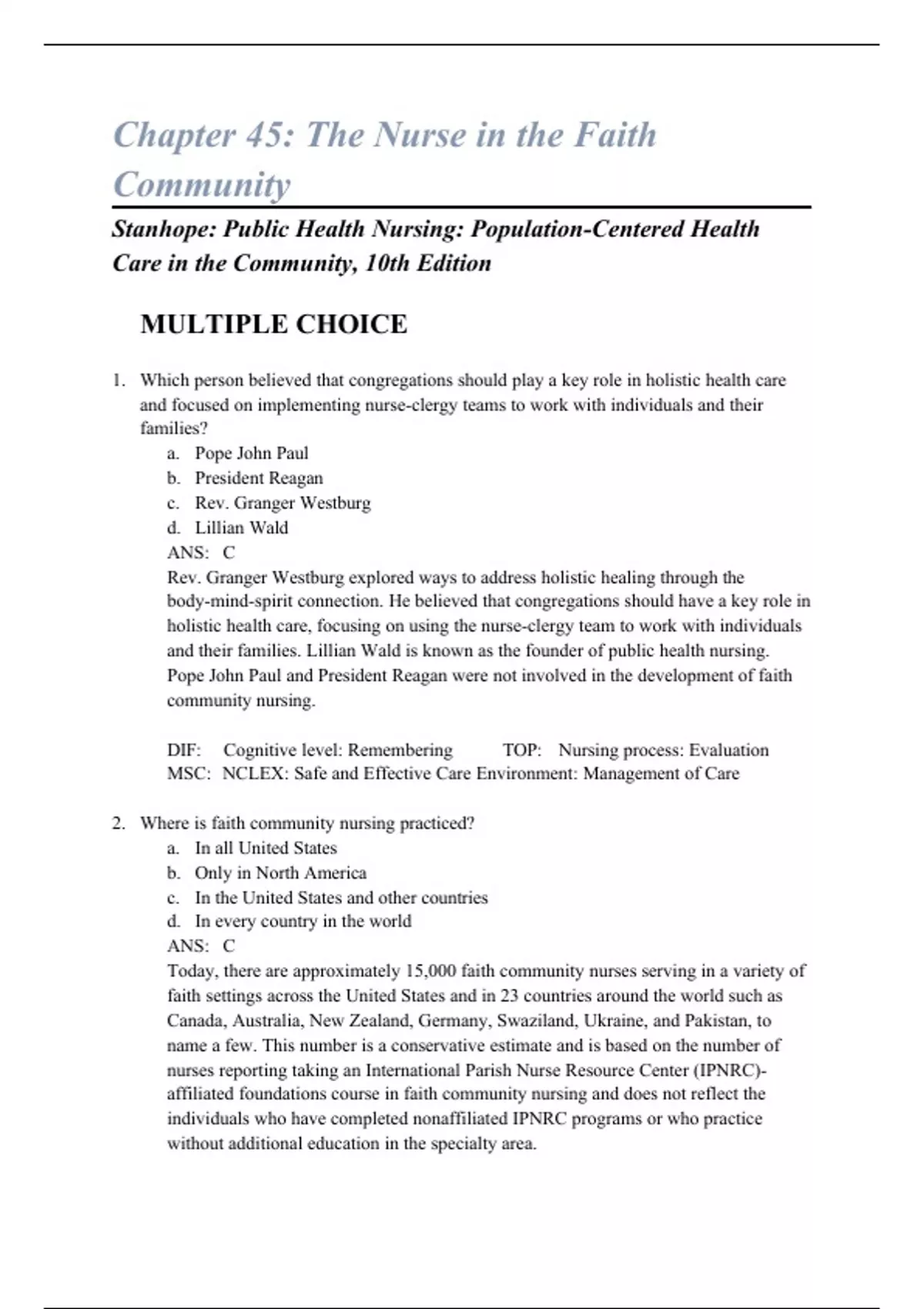 Chapter 45: The Nurse in the Faith Community |Stanhope: Public Health Nursing: Population-Centered Health Care In The Community, 10th Edition
