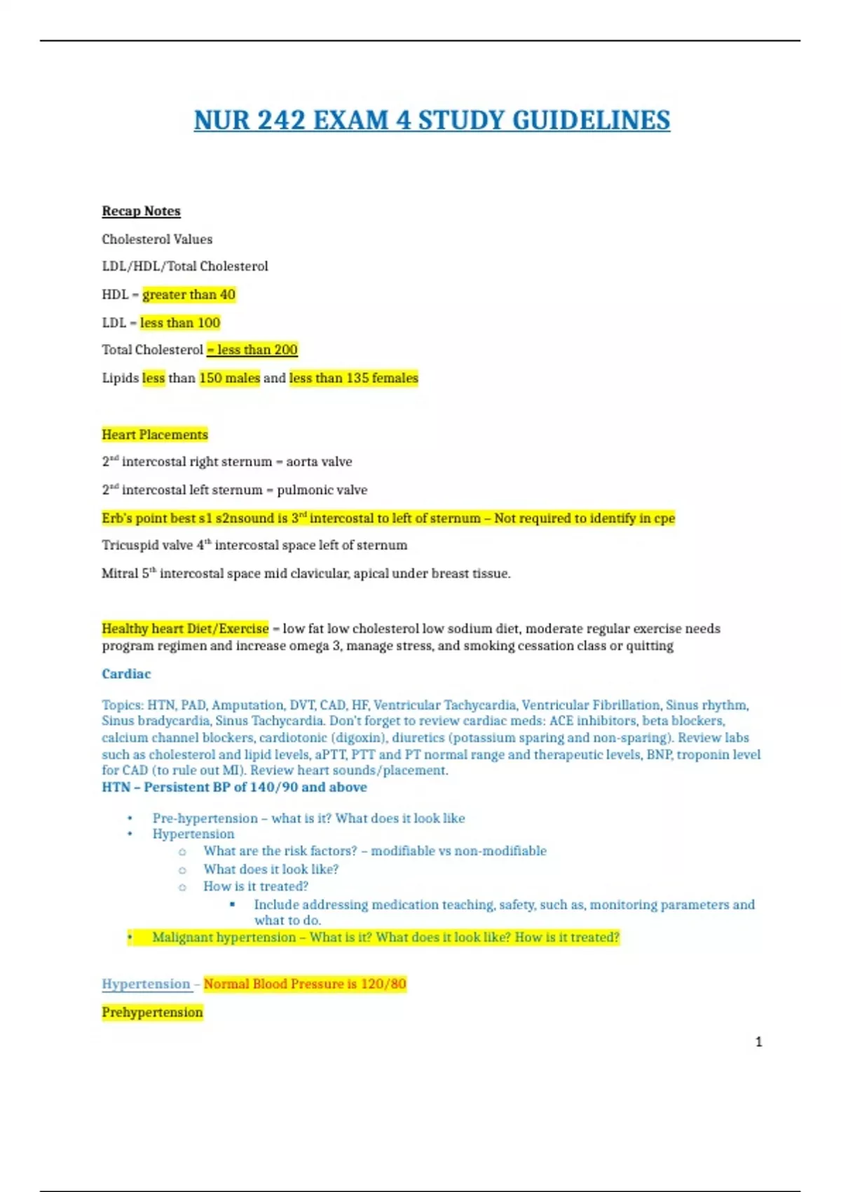 nur 242 exam 4 study guidelines