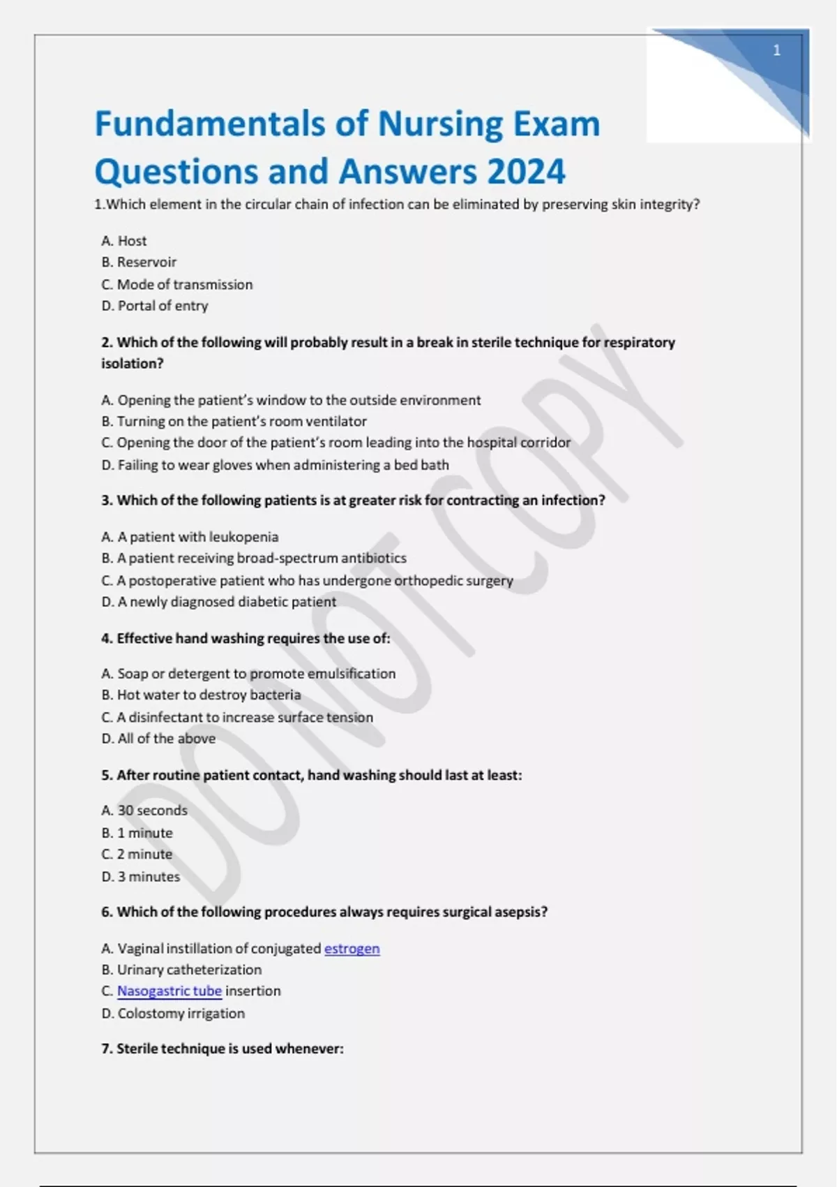 Fundamentals of Nursing Exam Questions and Answers 2024.