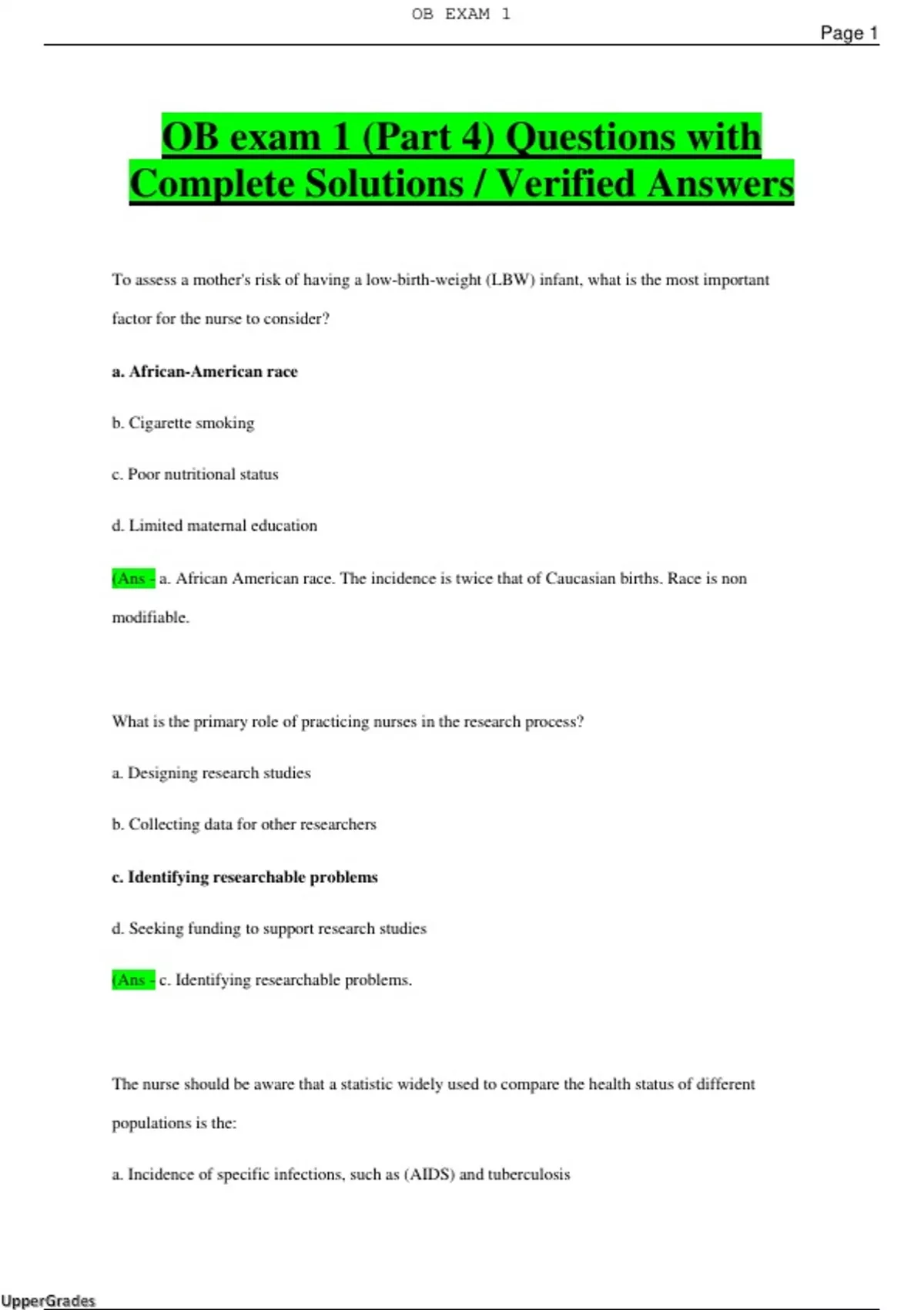 OB exam 1 (Part 4) Questions with Complete Solutions / Verified Answers,OB exam 1 (Part 4) Questions with Complete Solutions / Verified Answers,OB exam 1 (Part 4) Questions with Complete Solutions / Verified Answers,OB exam 1 (Part 4) Questions with Complete Solutions / Verified Answers
