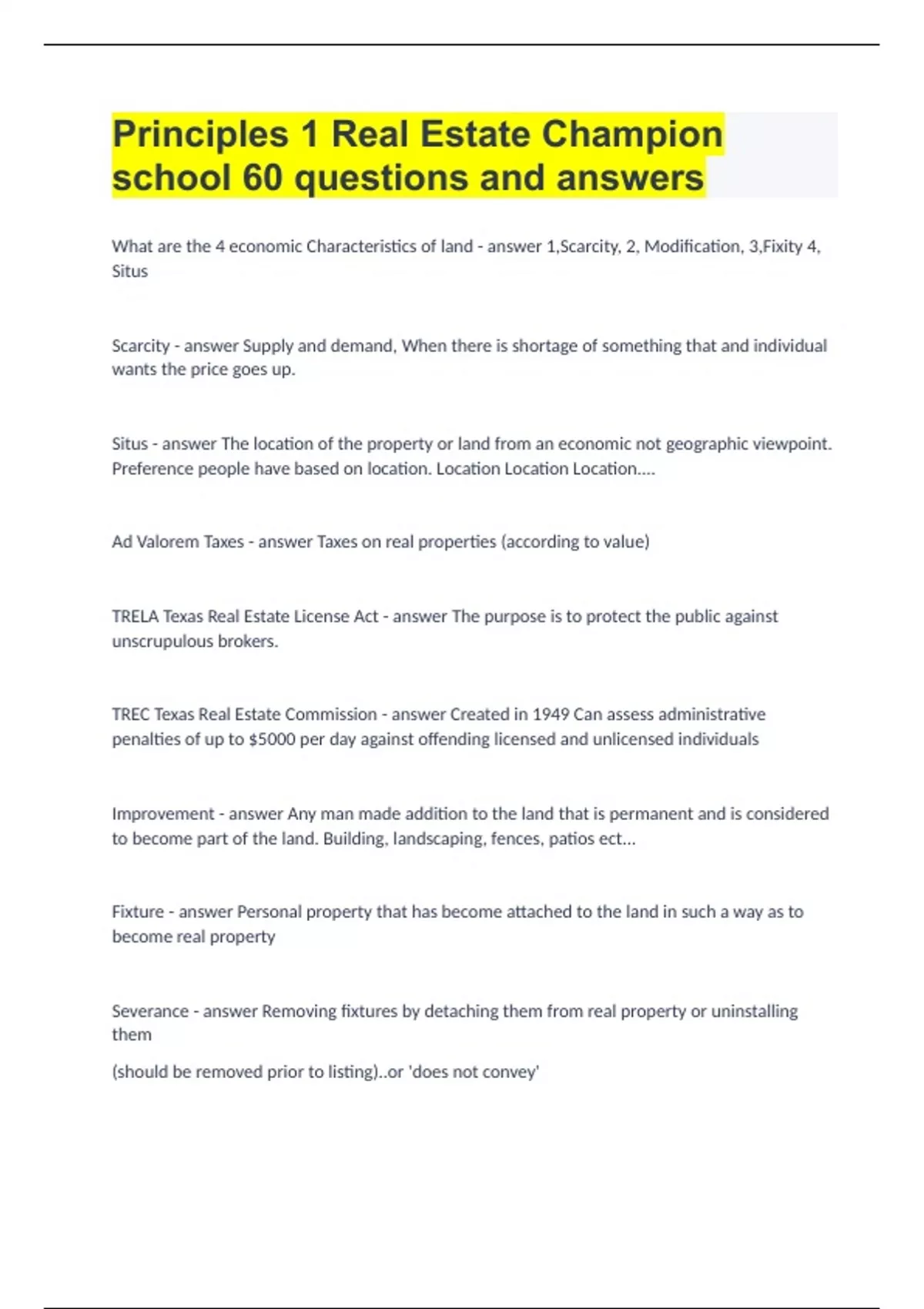 Principles 1 Real Estate Champion school| 60 questions and answers.