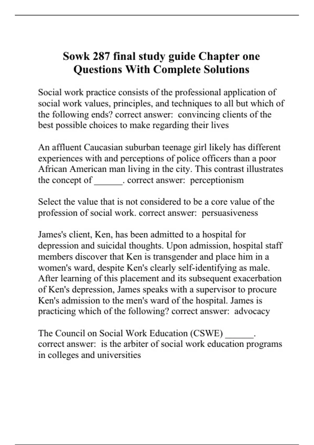 Sowk 287 final study guide Chapter one Questions With Complete Solutions