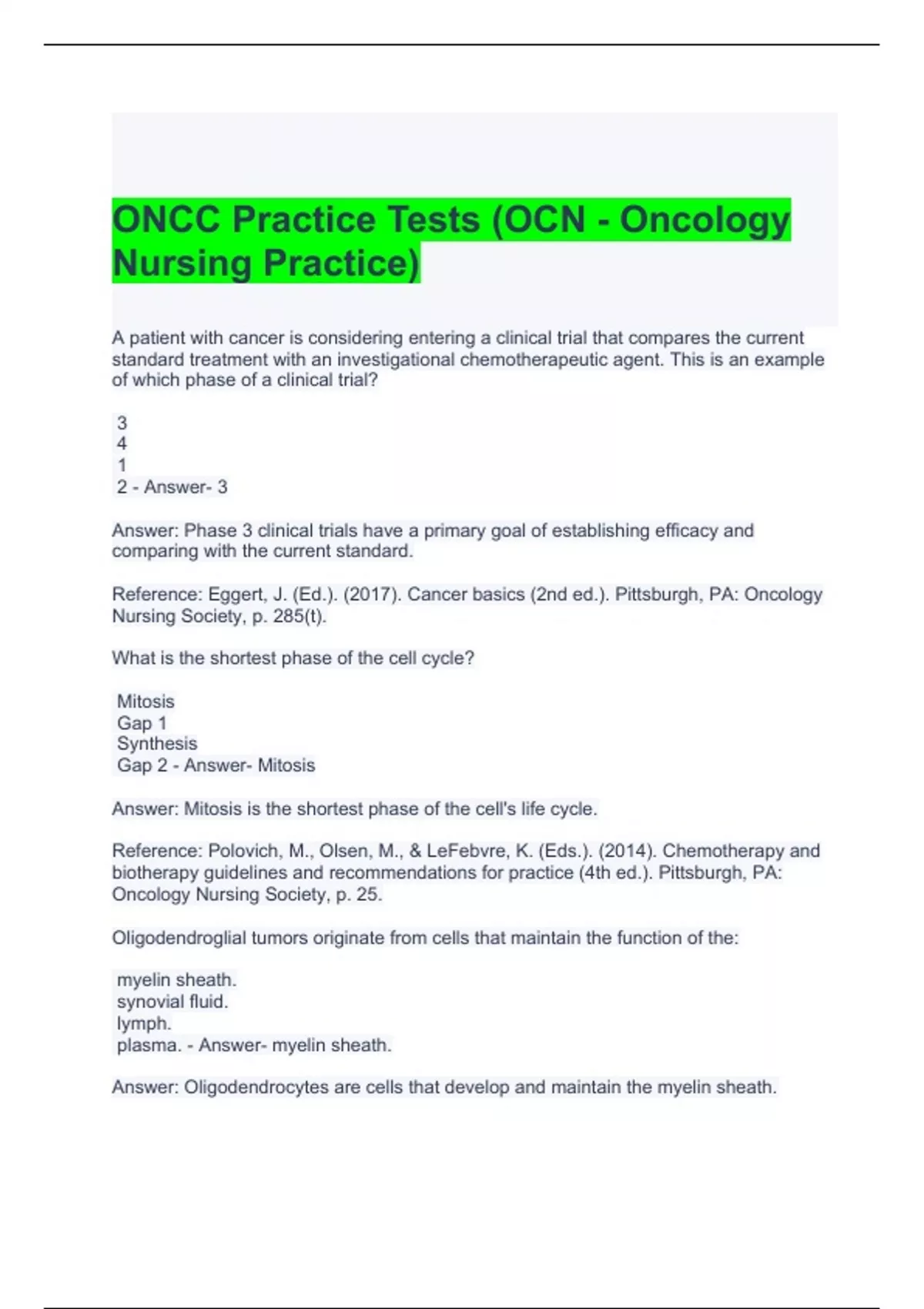 ONCC Practice Tests (OCN - Oncology Nursing Practice) Questions and Answers