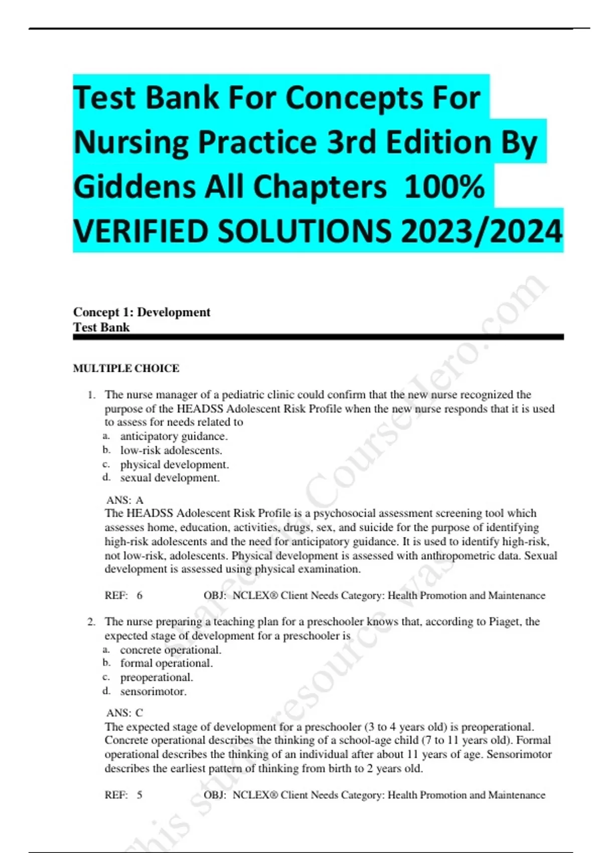 Test Bank For Concepts For Nursing Practice 3rd Edition By Giddens All Chapters 100% VERIFIED SOLUTIONS 2023/2024