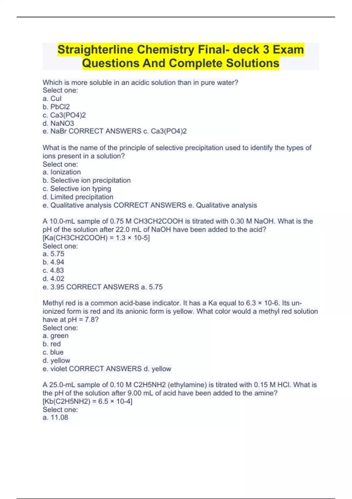 Straighterline Chemistry Final- deck 3 Exam Questions And Complete Solutions