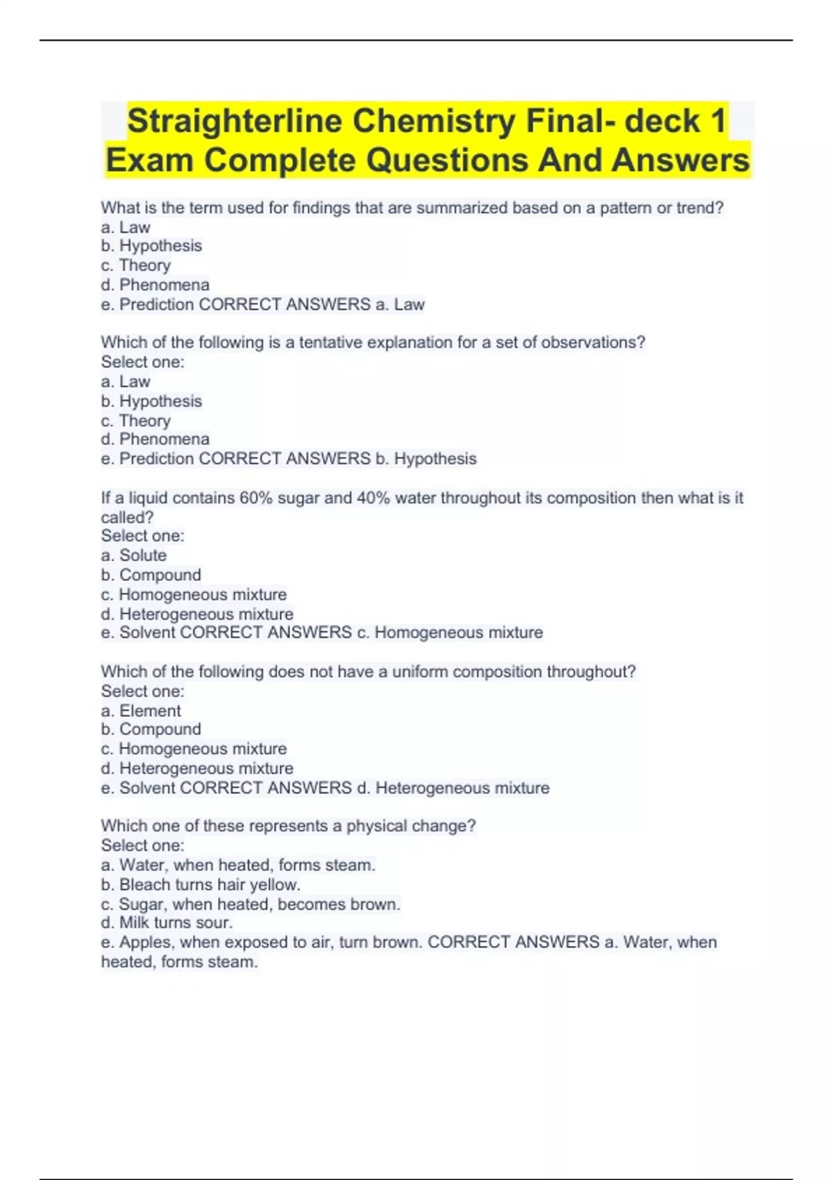 Straighterline Chemistry Final- deck 1 Exam Complete Questions And Answers