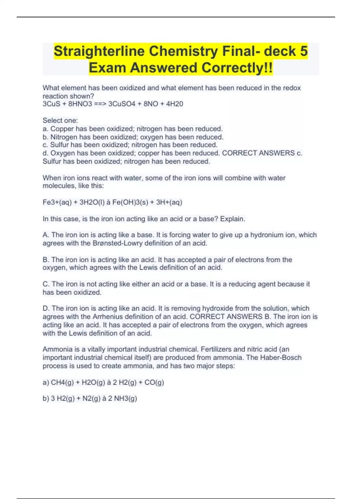 straighterline chemistry final deck 5 exam answer