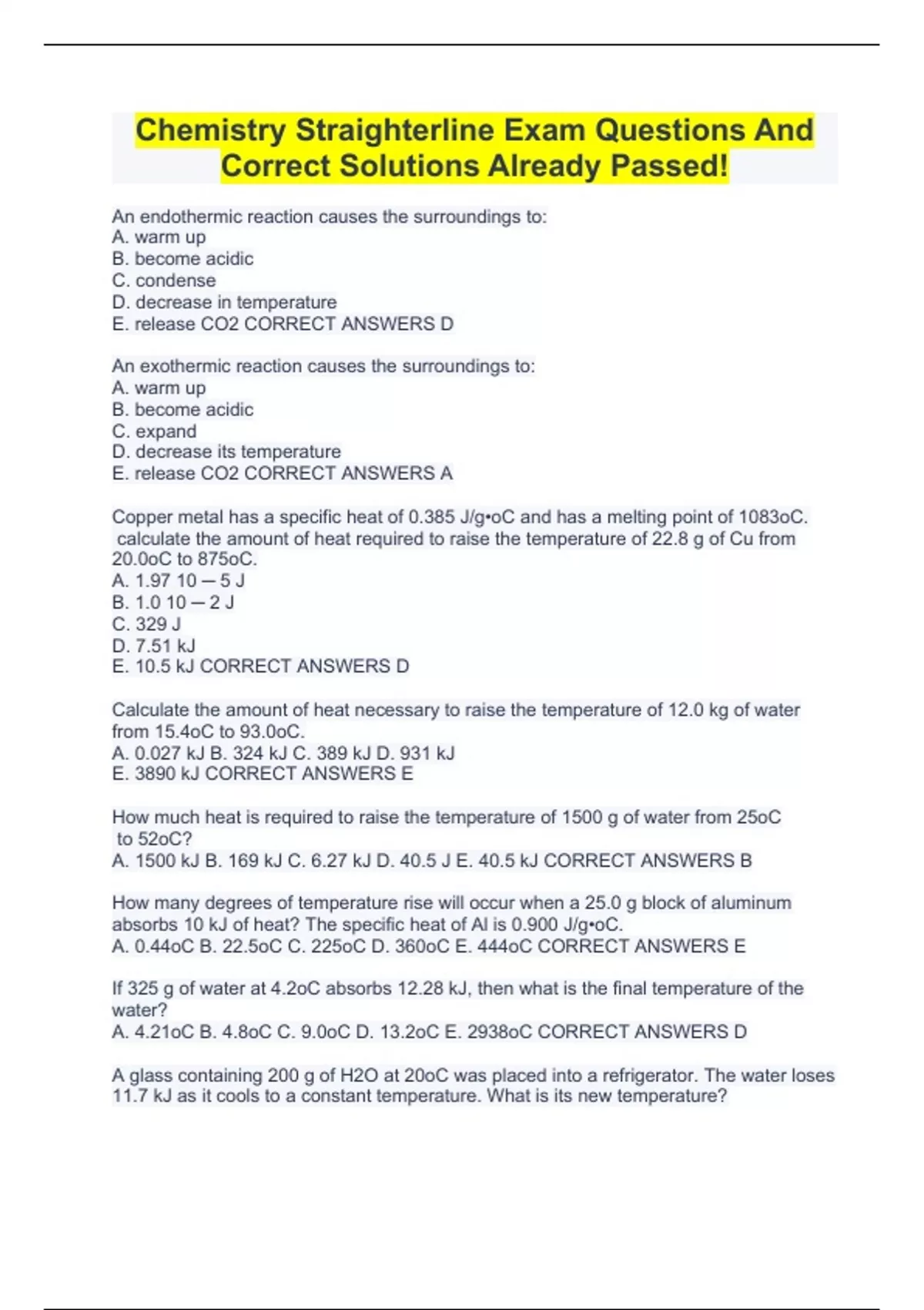 Chemistry Straighterline Exam Questions And Correct Solutions Already Passed!