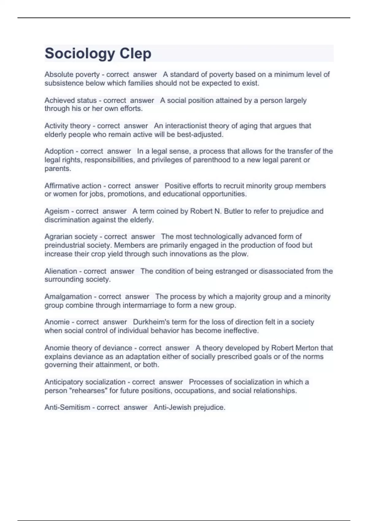 - sociology clep