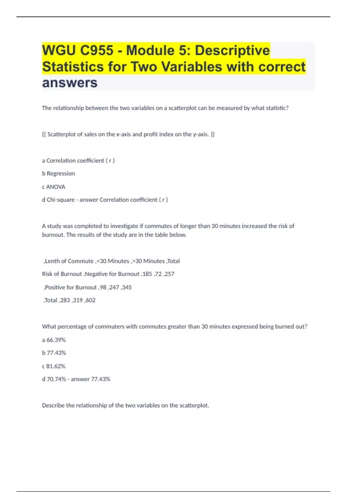 WGU C955 - Module 5 Descriptive Statistics for Two Variables with correct answers.