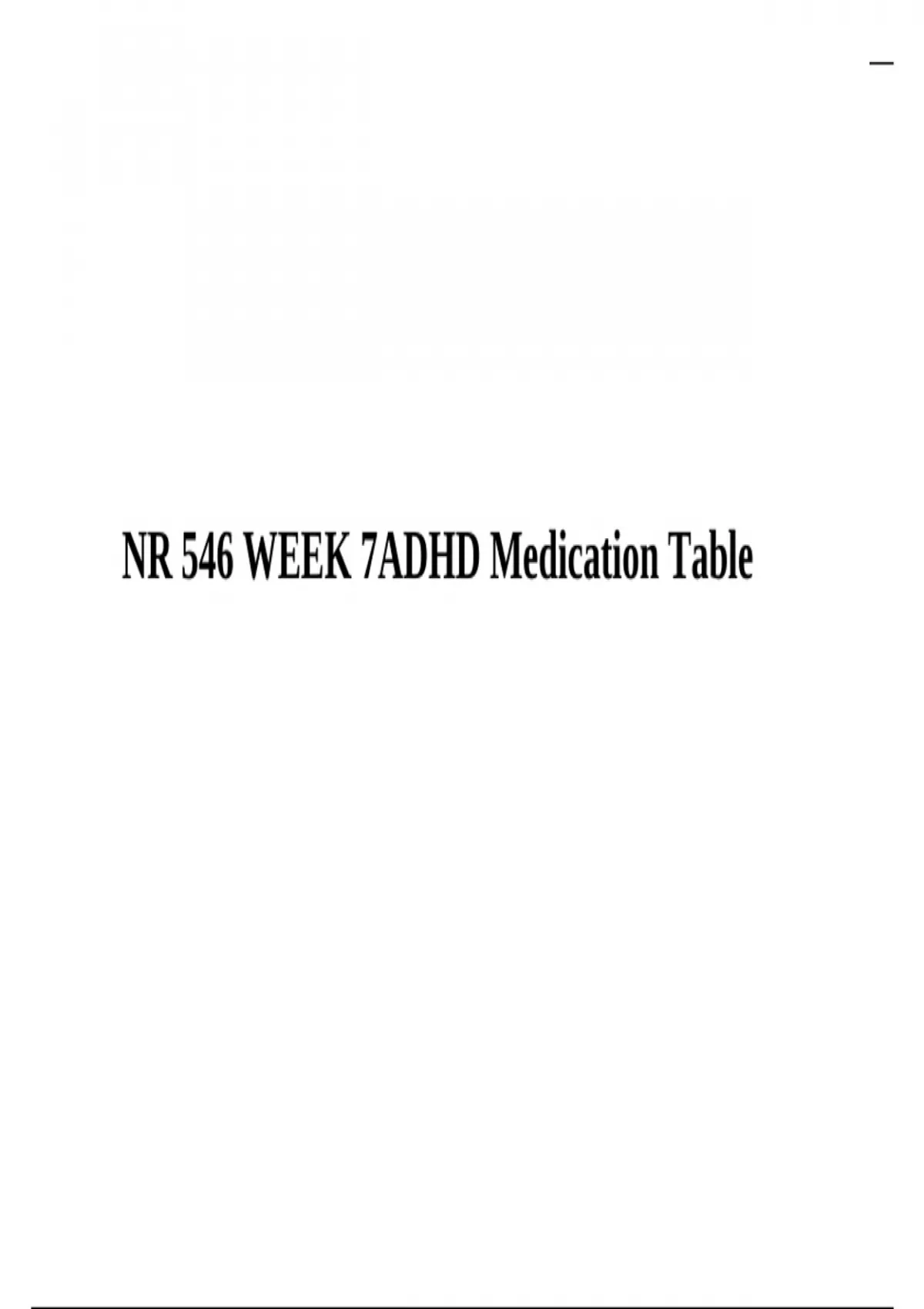 NR 546 WEEK 7 ADHD Medication Table