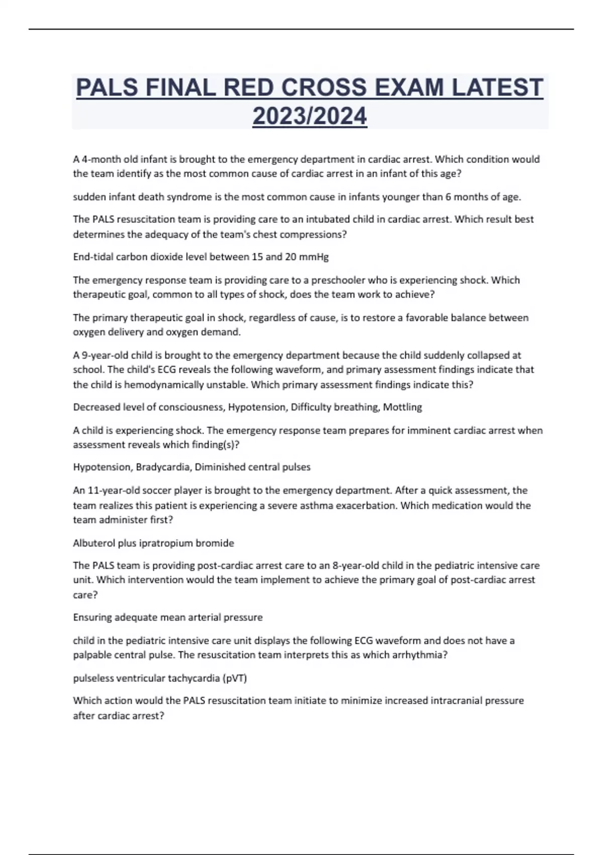 PALS FINAL RED CROSS EXAM LATEST 2023/2024